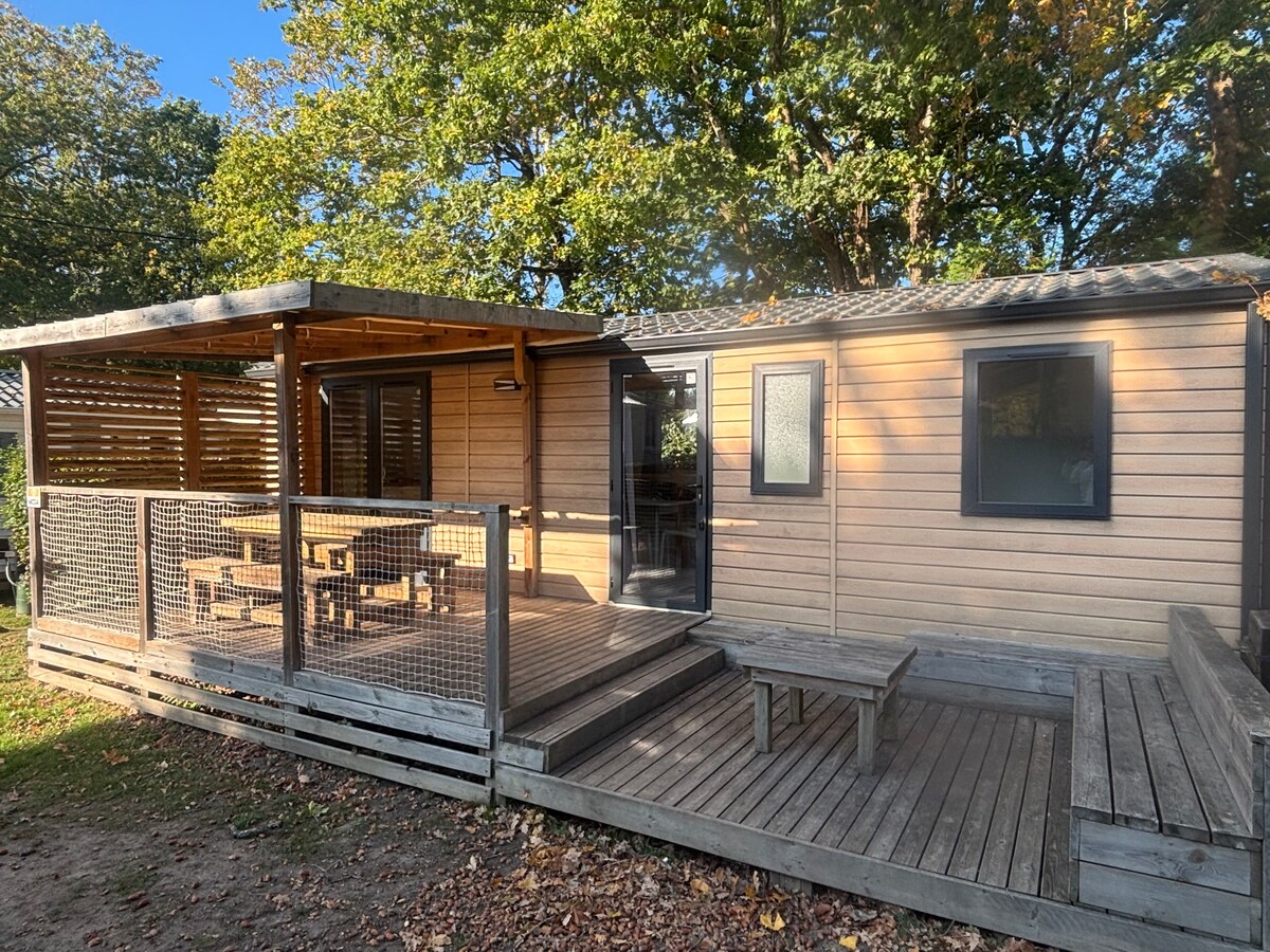 Chcesz spędzić wakacje blisko natury i 1 km od morza? Nasz mobilny dom czeka na Ciebie. Camping 4☆ les Bois de Bayadène. Nowy dom o powierzchni 40 m2, 3 sypialnie, 1 salon, 1 wyposażona kuchnia, 1 łazienka, 1 oddzielna toaleta. Goście mogą korzystać z dodatkowej przestrzeni dzięki zadaszonemu i ogrodzonemu tarasowi z meblami ogrodowymi. 1 gas plancha. Podgrzewany i nadzorowany obszar wodny (int/EXT), dostępny poprzez zakup karnetów rozrywkowych z kempingu. Klub dziecięcy, rozrywka dla każdego.