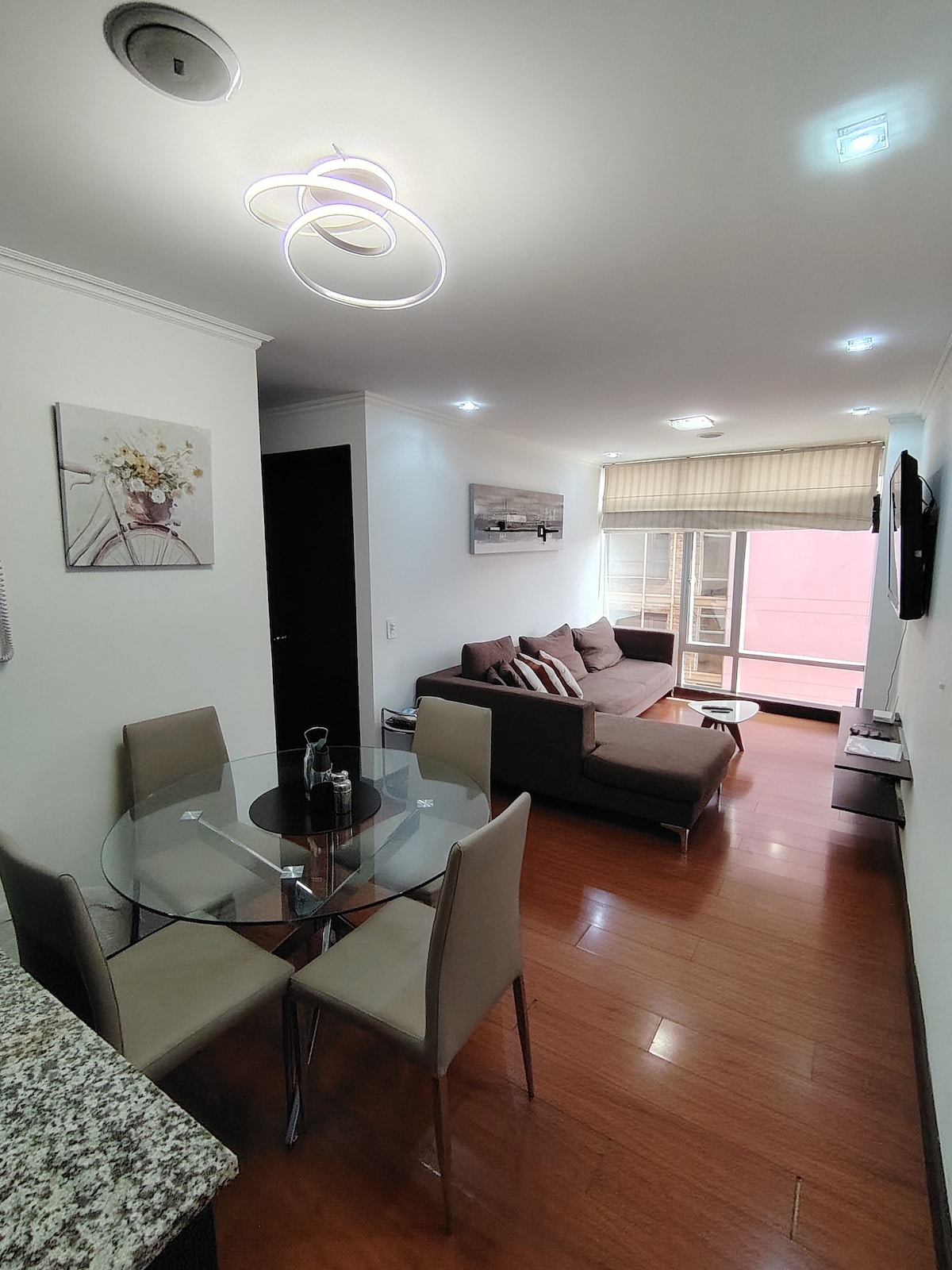Beautiful and cozy two-bedroom apartment on the 16th floor of a luxury building with an incredible view, located in the best area of Quito, just steps away from La Carolina Park, Megamaxi, Quicentro, and Atahualpa Stadium. It is close to restaurants, shopping centers, pharmacies, cafes, supermarkets, cinemas, and the building features: swimming pool, sauna, jacuzzi, business center, Kids Club, Lounge bar, pool table, terrace. It has 24/7 security and free parking.