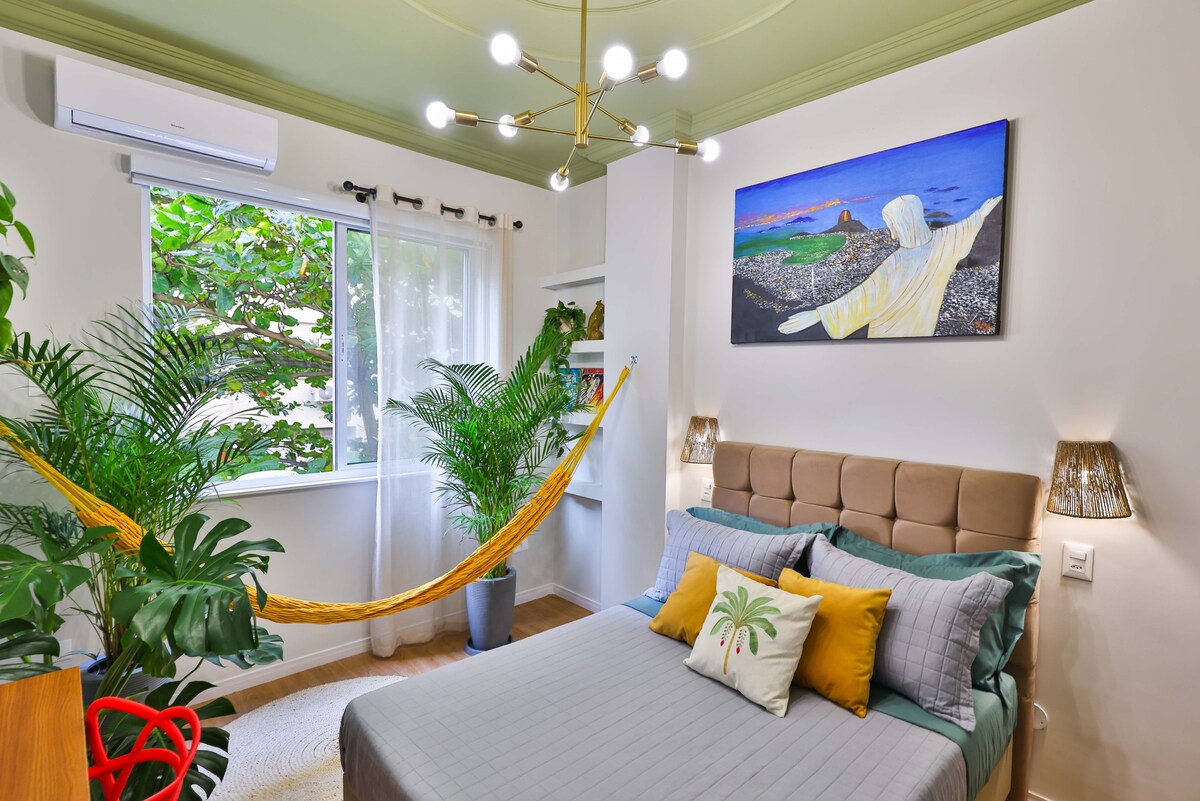 Poczuj tropikalny klimat zaledwie 100 m od plaży Copacabana! Stylowa łazienka z puszystymi ręcznikami, szamponem, mydłem, suszarką do włosów i żelazkiem. Zrelaksuj się w hamaku, czując morską bryzę, lub skorzystaj z klimatyzacji. Gotuj posiłki, oglądaj Netflixa i odpoczywaj po całym dniu przygód. Położony na tętniącej życiem ulicy z wieloma barami i restauracjami – idealny dla miłośników tętniącej życiem atmosfery Rio! (zatyczki do uszu są zapewnione, ale jeśli masz lekki sen, może to nie być idealna opcja). W odległości spaceru od Ipanema i Arpoador.