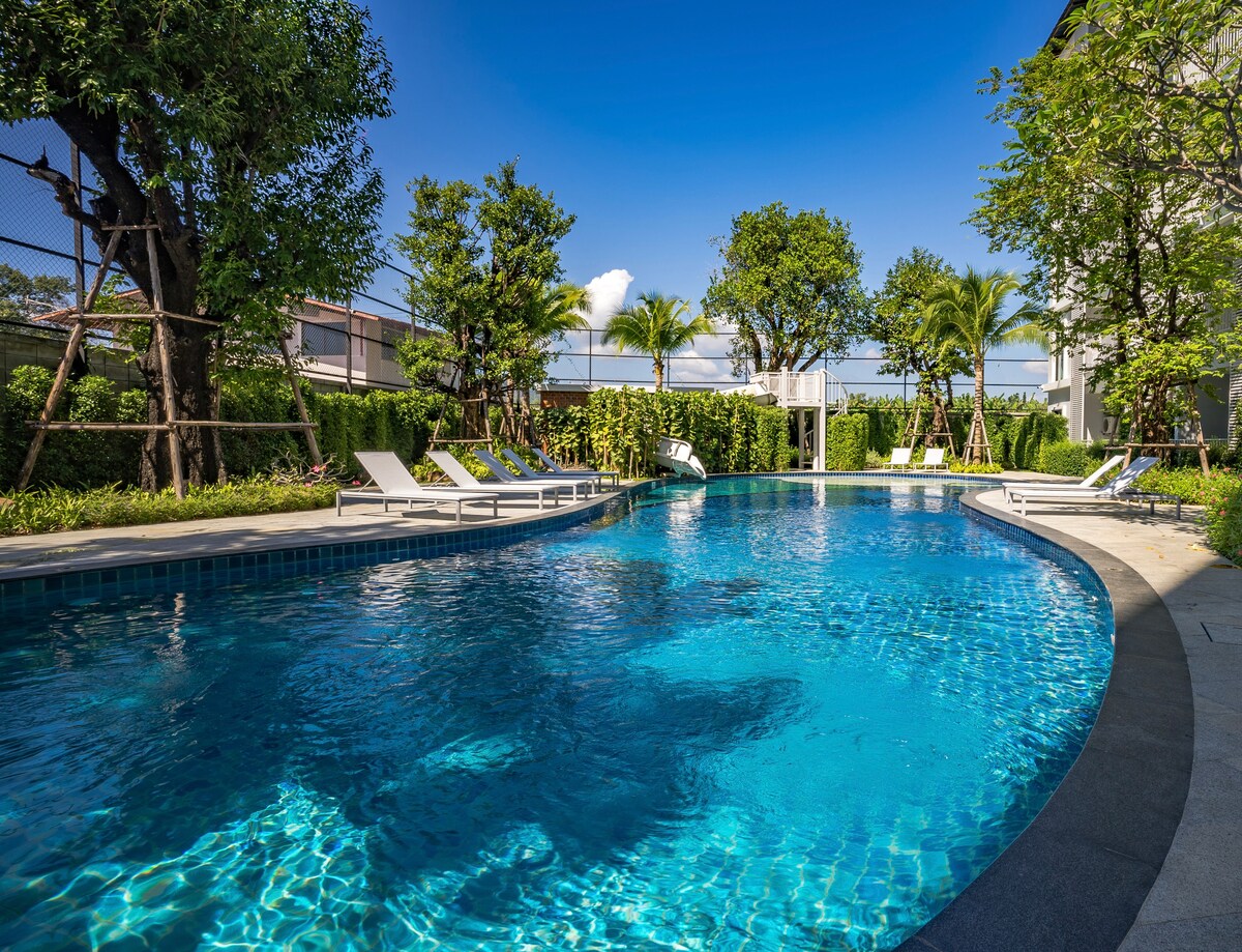公寓介绍: 我们的公寓位于普吉岛最南端的拉威海滩 公寓三面环海 此公寓是阳台直通泳池房,从阳台到泳池,仅一步之遥,虽然泳池是共享的,但直通的设计为您提供了私人泳池的一样的体验。 距离拉威海滩300米(rawai beach)步行5分钟。 距离奈汉海滩(Nai harn Beach)车程5分钟 距离神仙半岛2公里(5分钟车程) 距离yaniu Beach (5分钟车程) 距离查龙码头chalong(10分钟车程) 距离拉威海鲜市场开车10分钟 公寓周边步行5分钟即可到达711便利店,海边餐馆 ,(泰式按摩)massage店。 公寓配备健身房,无边泳池,儿童贵宾乐园 ,儿童水上乐园,餐厅 ,泰式按摩,星巴克咖啡厅,泳池bar 公寓水系环绕,配有6个游泳池。 房间阳台直通泳池泳道🏊 无论您是情侣旅行、独自飞行,还是与小孩一起享受家庭度假,这套公寓都是您的完美选择。 此外,作为房客,您可以使用所有度假村设施,确保您的住宿尽可能愉快和难忘。 马上预订,亲身体验普吉岛拉威的美丽和宁静!