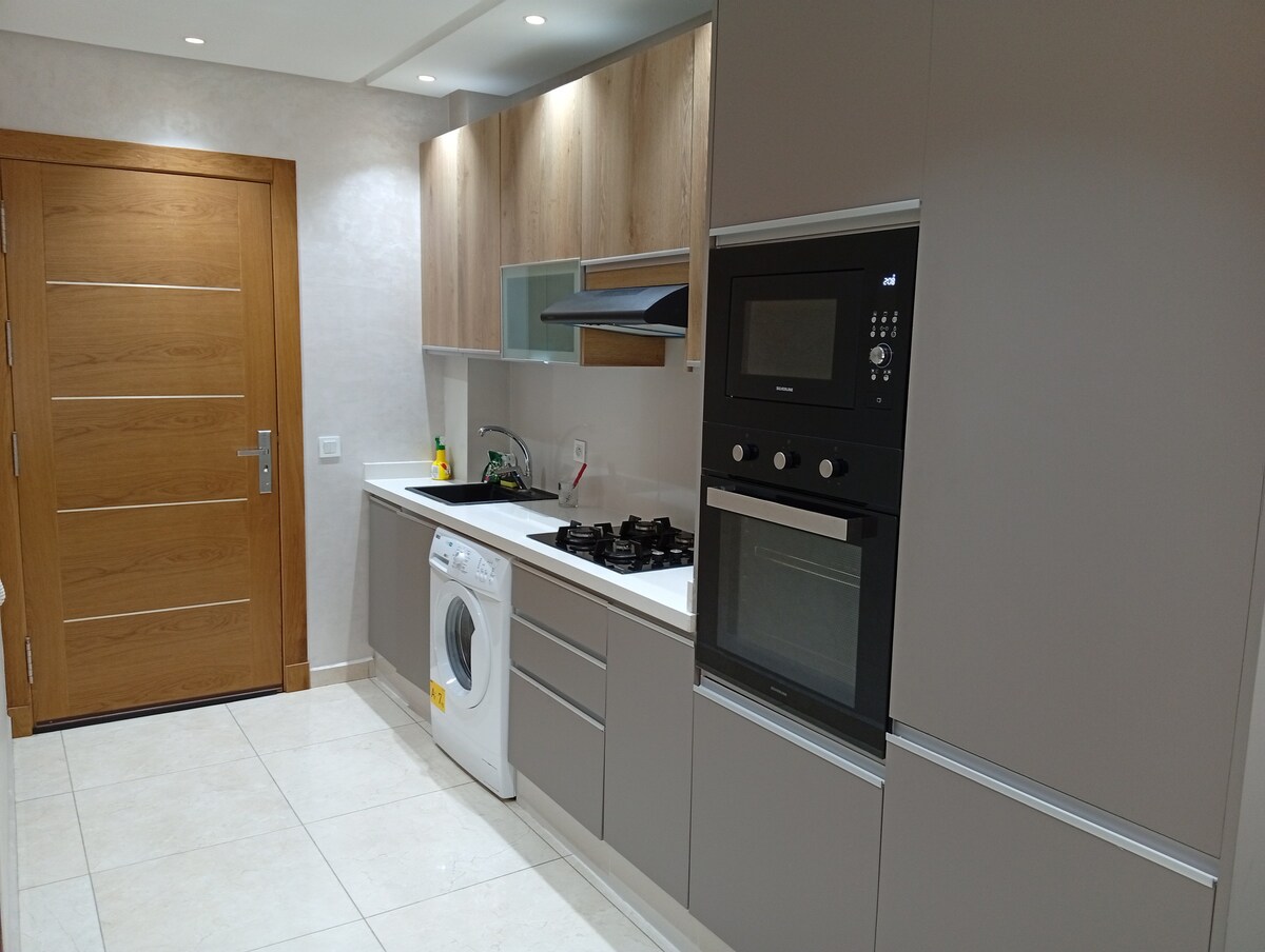 Un charmant appartement,Situé au rez-de-chaussée, pratique pour ma personne âgée. vue sur jardin, idéalement situé dans un endroit calme, à seulement 15 minutes de la ferme des loisirs, la plage, les jardins exotiques, Magic Parc, la gare ferroviaire et la tour Mohammed VI. À proximité de marina et l'aéroport de Salé. Avec son goût raffiné, propreté optimale et équipement complet, cet endroit offre un cadre confortable pour votre séjour, vous permettant de profiter de votre temps de détente.