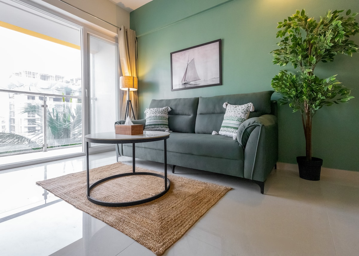 Obudź się przy śpiewie ptaków, delikatnej morskiej bryzie i wspaniałym wschodzie słońca, w otoczeniu bujnej zieleni. 5 minut spacerem do PLAŻY. Telewizory Smart TV, klimatyzacja, Wi-Fi, wanna. Spędź przytulne popołudnia na balkonie z książką i filiżanką kawy, w otoczeniu bujnej zieleni. Spaceruj po plaży, odkryj piękne ogrody krajobrazowe, basen i restaurację przy basenie w luksusowym kompleksie apartamentów, położonym w spokojnej i tropikalnej dzielnicy Madh Island Zomato, Swiggy i Blinkit dostarczają.