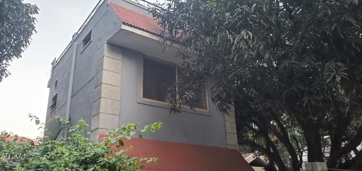 Miejsce otoczone bujną zielenią, wolne od zanieczyszczeń i dobrze wentylowane. dom z sypialnią jednoosobową, dużym korytarzem, toaletą i umeblowaną kuchnią. Miejsce w pobliżu stacji metra. Dobrze nadaje się dla rodziny, która może ugotować swoje pyszne jedzenie. Ludzie mogą cieszyć się spacerowaniem na świeżym powietrzu na terenie uniwersytetu w Bangalore w pobliżu tego domu.