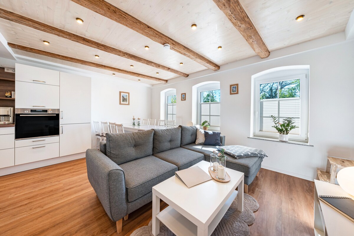 Nasz apartament znajduje się w pięknym miasteczku Radeberg, w bezpośrednim sąsiedztwie Drezna. Transport publiczny, taki jak pociąg i autobus, jest łatwo dostępny na piechotę i zabierze Cię bezpośrednio do starego, barokowego centrum Drezna z jego historycznymi zabytkami, ale także do Szwajcarii Saksońskiej, Moritzburga lub do jednej z wielu innych atrakcji w okolicy. W bezpośrednim sąsiedztwie znajdują się sklepy, restauracje i le.