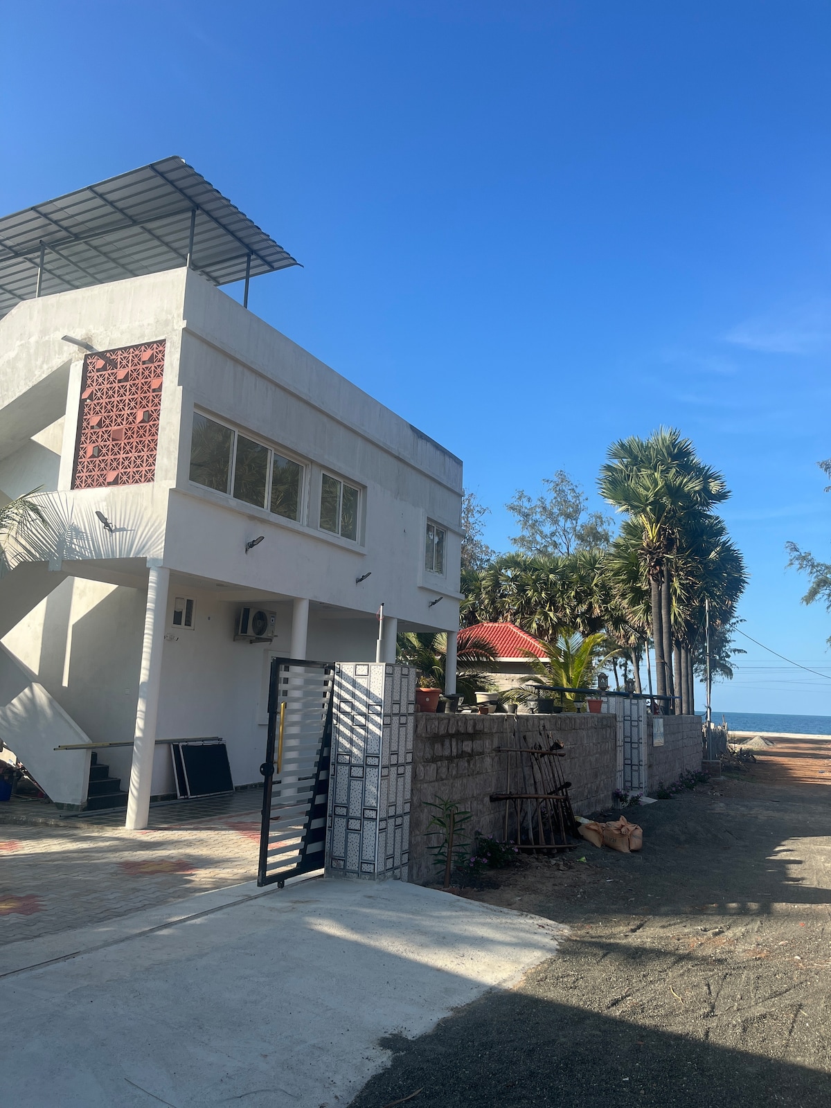 About 5-10mins drive to the iconic Pamban bridge and around 20-25 mins drive to Rameswaram, our beautifully crafted 3bhk air-conditioned home is located in a seaside town with few steps away from the beach. This is on First floor and Ground floor is were we stay. Our place is well known for seafood and trust me you cannot get over it. Currently we are undertaking only family guests. Our place is perfect if you want to avoid staying in the tourists packed Lodges and rooms in Rameswaram.
