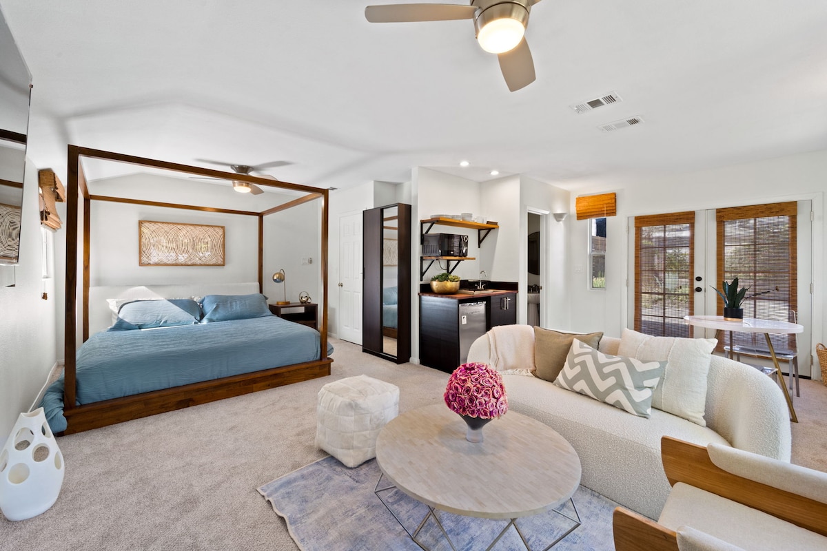 Ciesz się naszym spokojnym i pięknym apartamentem typu loft w południowym Rancho Santa Fe. Ciche i całkowicie prywatne miejsce wypoczynku w ogrodzie, jak 2 akrowa farma z sadem. Przyjazne dla dzieci i zaledwie kilka minut od plaży, terenów targowych, restauracji, golfa, jazdy konnej, wędrówek i zakupów. Ten przestronny apartament o powierzchni 900 stóp kwadratowych obejmuje Wi-Fi, 2 telewizory ROKU, pełny aneks kuchenny, stół jadalny, łóżko typu King, dodatkowe dwa łóżka typu twin XL. 7 mil od plaży, 2,5 mil od Trader Joe 's i wielu restauracji.