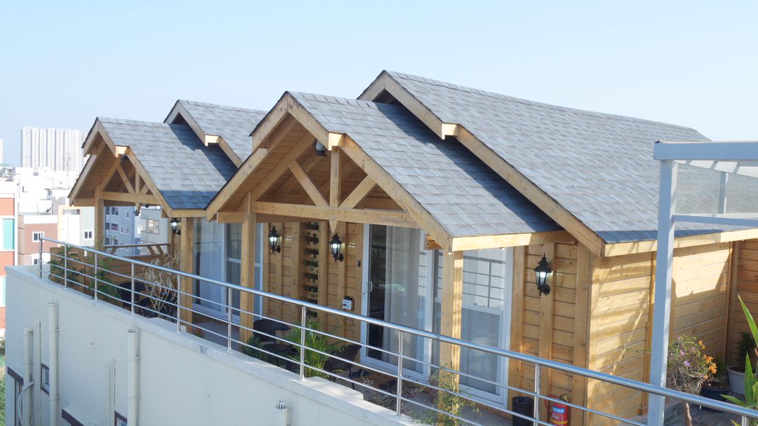 Hotel DSR Wooden Cottage 🌅 Ciesz się pięknymi widokami na otaczającą przyrodę i rozgwieżdżone niebo z drewnianego domku na dachu z jacuzzi.