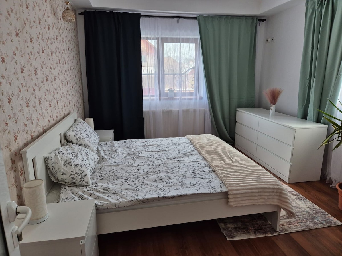 Zrelaksuj się z rodziną! Apartament składa się z 2 sypialni z łóżkiem matrymonialnym (smart TV z kontem Netflix, grami społecznymi), wyposażonej kuchni, 2 w pełni umeblowanych pokoi i jasnego korytarza, w którym można napić się kawy lub poczytać książkę z widokiem na taras. Na podwórku znajduje się grill i miejsce parkingowe. Lokalizacja znajduje się 2 km od głównych atrakcji turystycznych miasta (Dino Parc, Rasnov Citadel, Centru...) Znajduje się pod adresem: -10 km od Bran -10 km od Poiana Brasov
