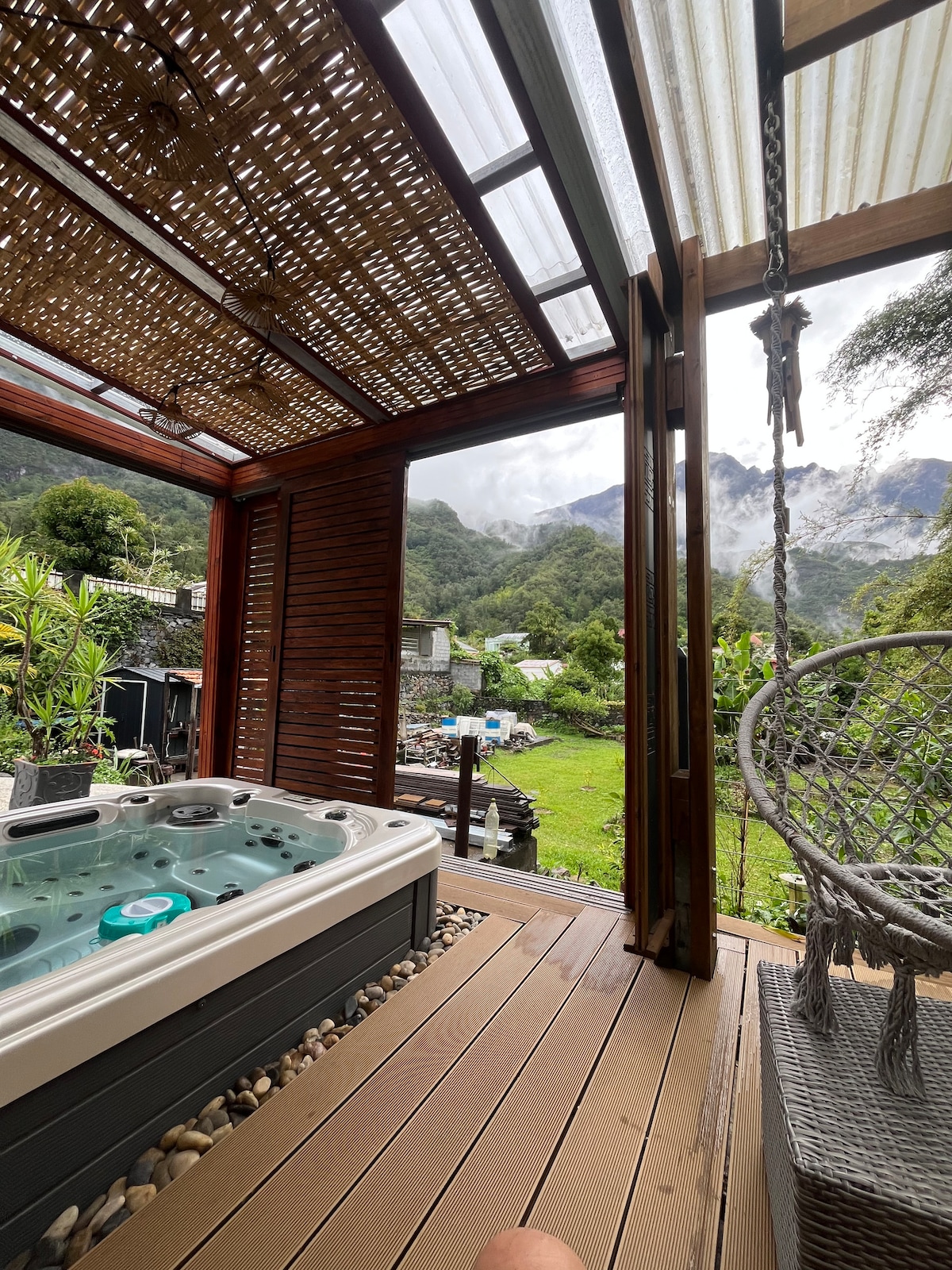 Dans un joli jardin créole clos de 1000m2 ( litchis, longanis, avocats, vanille, mangues, Pitaya, coco...) venez vous réveiller avec une magnifique vue sur les montagnes dans un bungalow récent conçu en bois local, avec son entrée indépendante et aménagée avec charme. Vous pourrez aussi vous détendre et vous relaxer toute l'année dans une piscine partagée en pierre naturelle entre 28 et 30°C. À partir de 7 nuits et au delà, une remise est consentie. Alors n’hésitez plus ! ☺️