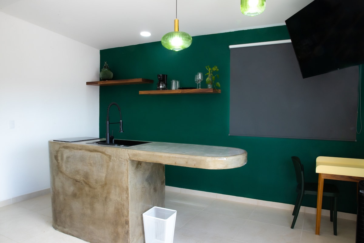 Zrelaksuj się podczas tego wyjątkowego i spokojnego wypoczynku. Przyjeżdżasz na wycieczkę lub służbowo? Ta opcja jest dla Ciebie. Loft ze wszystkimi udogodnieniami, aby spędzić niesamowity pobyt. W ekskluzywnej okolicy, gdzie masz najlepsze drogi i dostęp do każdego punktu miasta. Apartament jest w pełni wyposażony, posiada łóżko małżeńskie i pojedynczą rozkładaną sofę, biurko, Wi-Fi, w pełni wyposażoną kuchnię, miejsca do wypoczynku i ekskluzywny parking dla samochodu.