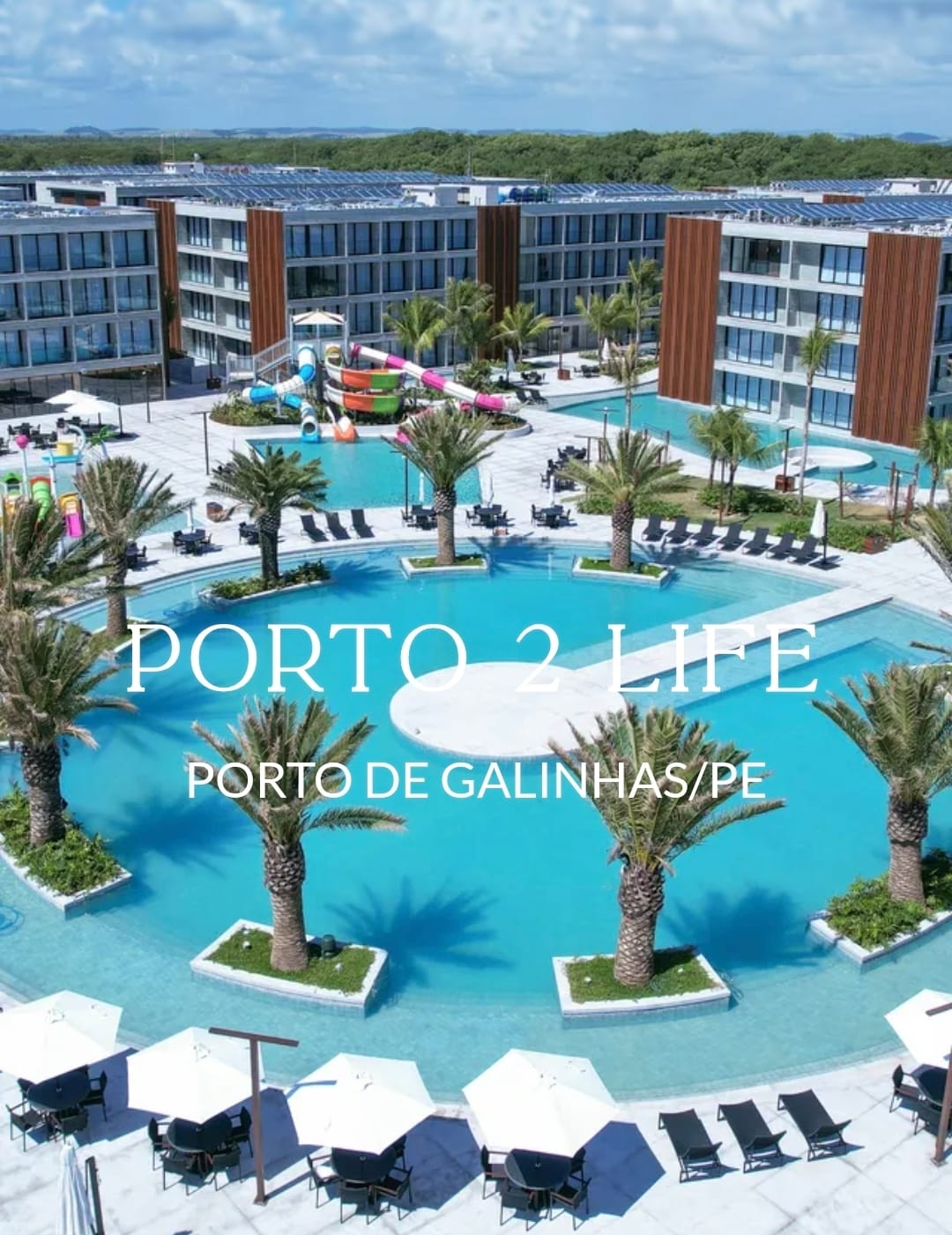 Porto 2 Life Resort – Ipojuca, Pernambuco Kompletny ośrodek na wybrzeżu Pernambuco, idealny dla rodzin, par i przyjaciół. Na miejscu jest ponad 15 basenów, w tym podgrzewane, plac zabaw dla dzieci ze zjeżdżalnią, biblioteka zabawek, kręgielnia, kino, karaoke, sala gier i gry elektroniczne. Strefa sportowa z boiskami i minigolfem. Gastronomia z Sushibar, cukiernią, barami i restauracjami. Zwierzęta akceptowane (małe psy, opłata). 220 V, zakaz palenia i 1 miejsce parkingowe w cenie.