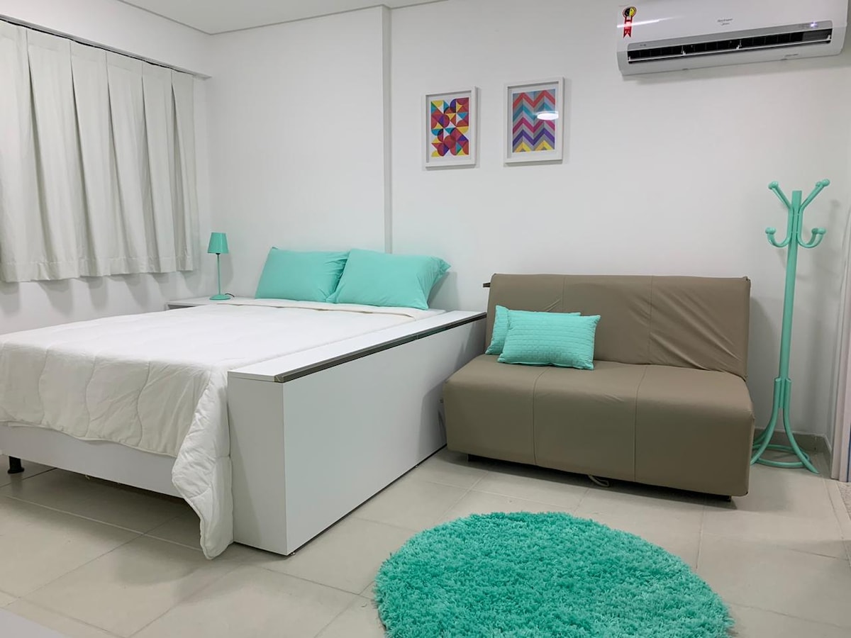 Mieszkanie urządzone i zaplanowane w najmniejszych szczegółach, aby zapewnić gościom doskonały pobyt. Nasza przestrzeń oferuje wszystkie niezbędne udogodnienia, takie jak kuchenka mikrofalowa, minibar, ekspres do kawy, telewizor Smart TV i internet Wi-Fi 240 Mb. Znajdujemy się pod adresem Boa Viagem (nadmorskie), w najbardziej cenionym regionie Recife. W pobliżu centrum handlowego RioMar, rynków, 5 km od centrum medycznego, a także restauracji i bistro z najbardziej zróżnicowanymi kuchniami. Tutaj znajdziesz to, co najlepsze w Recife.
