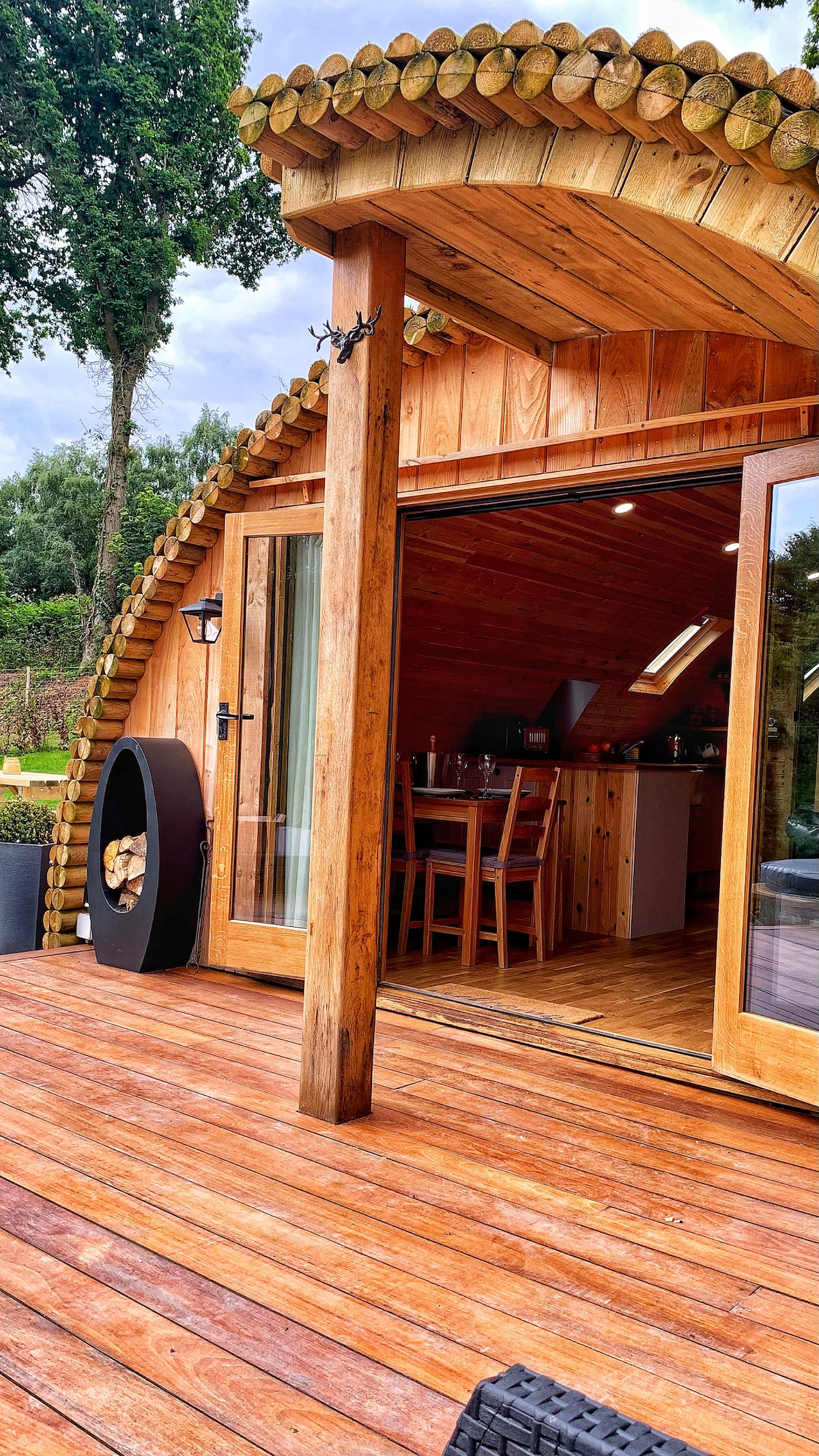 Hand crafted log cabin, set alone in the Wye Valley AONB, Wales. Traditional character, along with a host of modern comforts. Open living areas, 2 bedrooms & a bathroom. Comfortably sleeps 4-6. Fully equipped kitchen with dishwasher & hot drinks machine. Log burning fire. Smart TV. Free Wi-fi. Linen, luxury towels & bath robes. Welcome pack including Prosecco. Large wood fired hot tub, sunken into decking on the balcony. Patio area with furniture. Fire bowl with bbq grill. Array of wildlife.