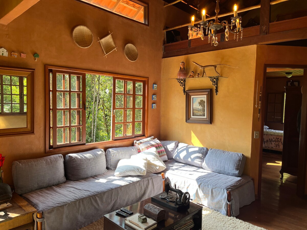 Przytulna górska chata dla 4 osób , 10 km od centrum Lumiar, w czarującej dolinie, otoczona mnóstwem zieleni i rzeką Bonito. Wyposażony w sypialnię, zintegrowany salon z kuchnią , łazienką i dobrą przestrzenią rekreacyjną. Idealny dla tych, którzy lubią ciszę i lubią przyrodę w pełnej formie . Znajduje się na miejscu Sunyata, gdzie organiczne są uprawiane w agroturystycznym lesie. Obszar ten jest częścią lasu atlantyckiego, z wodą źródlaną, szlakami i dobrymi spacerami od rzeki