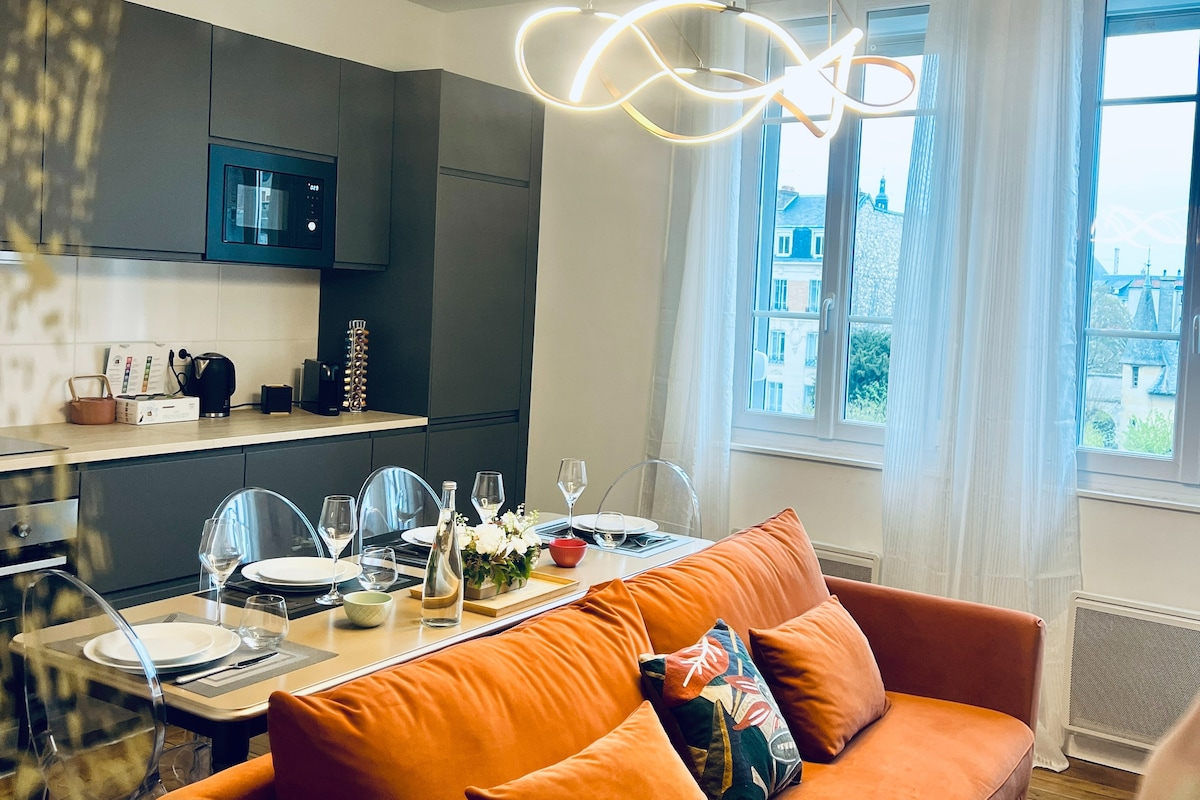 Bardzo przestronne⚜️ ⚜️ apartamenty o wysokim standardzie położone na szlaku Królów Francji, w samym centrum miasta, w pobliżu katedry, łatwy i bliski parking ⚜️ ⚜️ Wybierasz się na szampanową trasę na jedną noc, weekend, tydzień lub dłużej? Niezależnie od tego, czy jesteś na wakacjach, w podróży służbowej, czy też uczestniczysz w kursach, ta nieruchomość będzie idealna dla Ciebie ze względu na jej położenie w centrum miasta, w pobliżu wszystkich udogodnień i miejsc kultury.