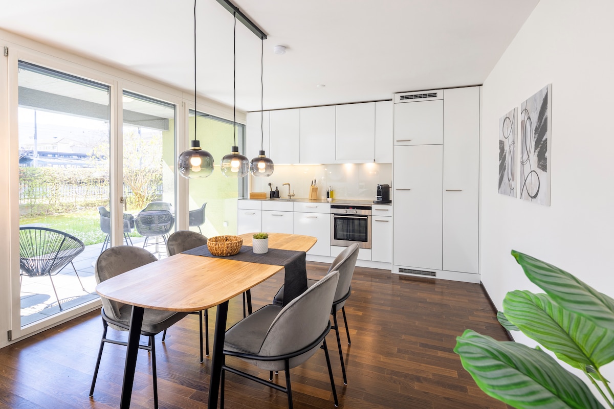 Apartament jest bardzo nowoczesny i dobrze wyposażony. Są tu dwie sypialnie (1 z łazienką) i oddzielna łazienka. Apartament posiada dużą, otwartą kuchnię, a także jadalnię i salon. Salon na tarasie zaprasza do odpoczynku. Apartament ten jest idealnie położony dla Baden, Zurychu lub innych wycieczek. Autostrada znajduje się 3 minuty jazdy samochodem, a przystanek autobusowy znajduje się 2 minuty spacerem. Do Zurychu można dotrzeć w 30 minut komunikacją miejską.