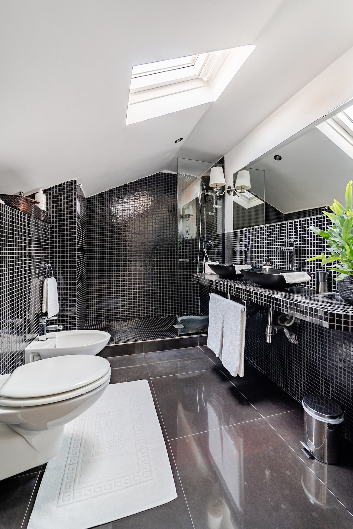 Apartament na poddaszu na pierwszym piętrze na dziedzińcu Palazzo Pallavicini, w samym sercu Bolonii. Cisza i akcenty designerskie nadają temu miejscu intymny i przytulny charakter. Biały drewniany sufit podkreśla sugestywną fototapetę w sypialni i japońskie panele w szafie. Wiersze na ścianach, liczne rośliny i mały taras w kształcie okna dopełniają magii tego miejsca. Apartament został całkowicie odnowiony pod koniec 2021 roku i wyposażony we wszystkie udogodnienia.