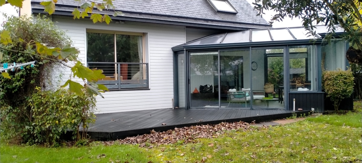 Apartament T2 na parterze, 10 minut spacerem od dworca kolejowego. Korzystasz również z przystanku autobusowego u stóp mieszkania, gdzie 3 linie zabiorą Cię do centrum Rennes, na dworzec kolejowy... ale centrum (République) jest oddalone tylko o 20 minut spacerem. Dla podróżujących samochodem parking na ulicy jest bezpłatny (nie zawsze łatwy, ale bezpłatny). Apartament wychodzi na wspólny taras naszego domu, a nasze wyposażenie (plancha, leżak, ...) jest do Twojej dyspozycji.