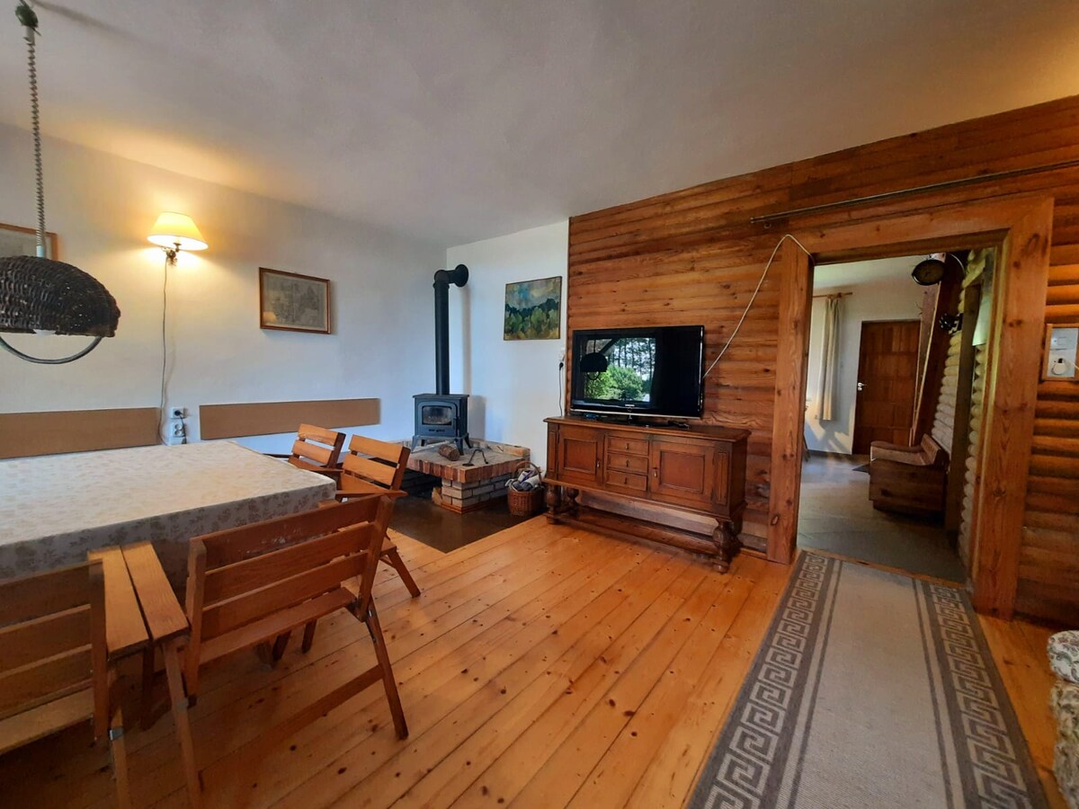 WAKACJE W BAJKOWYM DOMU!!!! Relaks na łonie natury. Samodzielny dom z bala w stylu kanadyjskim, otoczony lasem przy jeziorze pozwoli w pełni wypocząć napawając się śpiewem ptaków i wszelakich odgłosów natury przeszywających wszechobecną ciszę i spokój. Niektóre terminy obostrzone są minimalną liczbą dni, jeśli masz inne, krótsze terminy, proszę o kontakt Prosimy o nie organizowanie dużych eventów: kawalerskie, panieńskie, huczne uroczystości Dodatkowe rzeczy..zapytaj