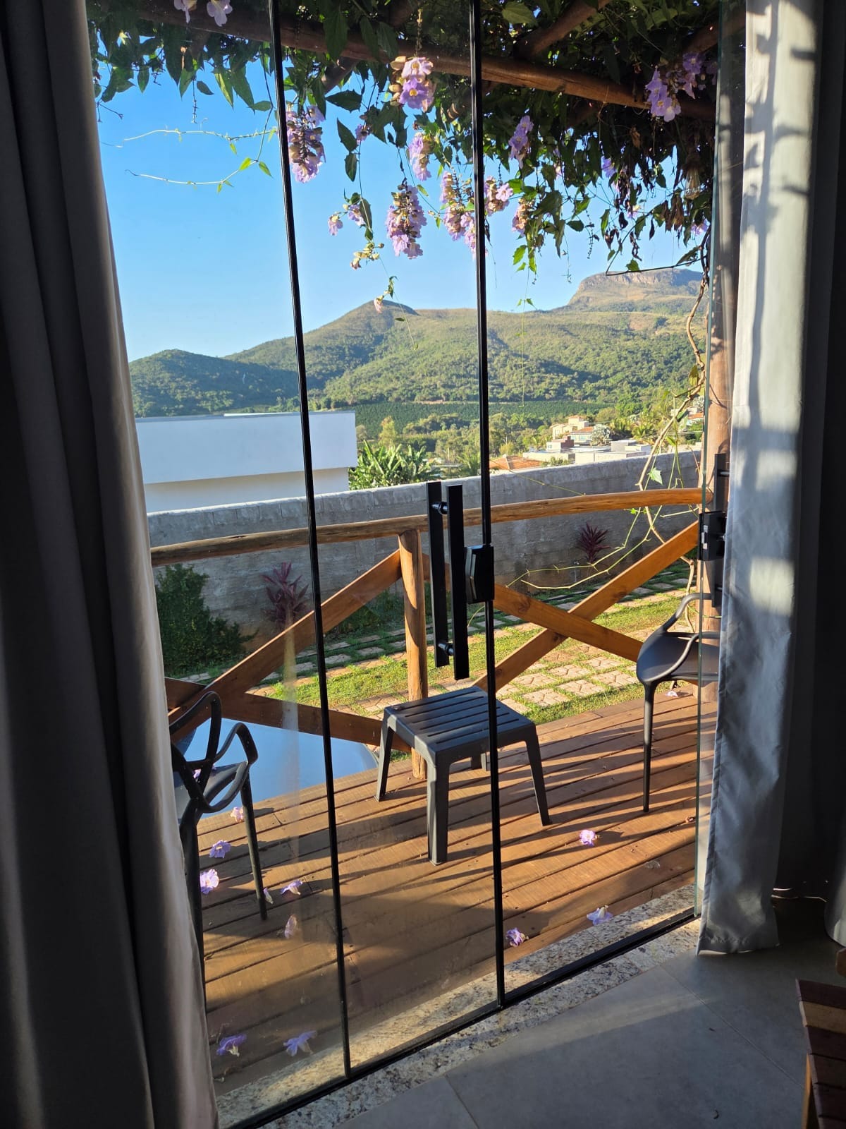 Exclusivo para adultos, este Chalé sofisticado e moderno, com vista deslumbrante do Mar de Minas, com banheira de hidromassagem fechada com janelas de vidro, podem ser usadas abertas no verão, com deck panorâmico, churrasqueira, fogo de chão e cozinha completa, Cama queen, jogo de cama e banho de altíssima qualidade, jardins, móveis externos e com estacionamento e acesso ao local todo pavimentado. Além de um mini mercado na propriedade para sua comodidade, pois não servimos café da manhã.