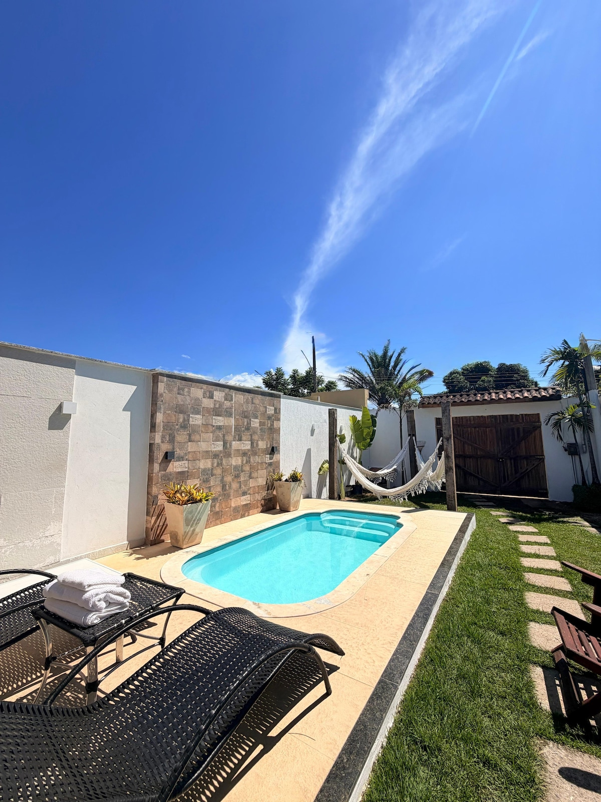 Ekskluzywny wypoczynek w Barra de Guaratiba. Prywatne jacuzzi, wspaniałe widoki, hamak i ekologiczny kominek na świeżym powietrzu na własnym terenie. Odnowione studio z łóżkiem KING, telewizorem Smart TV, w pełni wyposażoną kuchnią i pralką. Przy domu, ale całkowicie prywatne, z oddzielnym wejściem. Dwa miejsca parkingowe i całodobowa ochrona na osiedlu. Idealne dla par szukających komfortu, prywatności i uroku w jednej z najspokojniejszych dzielnic Rio. Brak głośnej muzyki na zewnątrz.