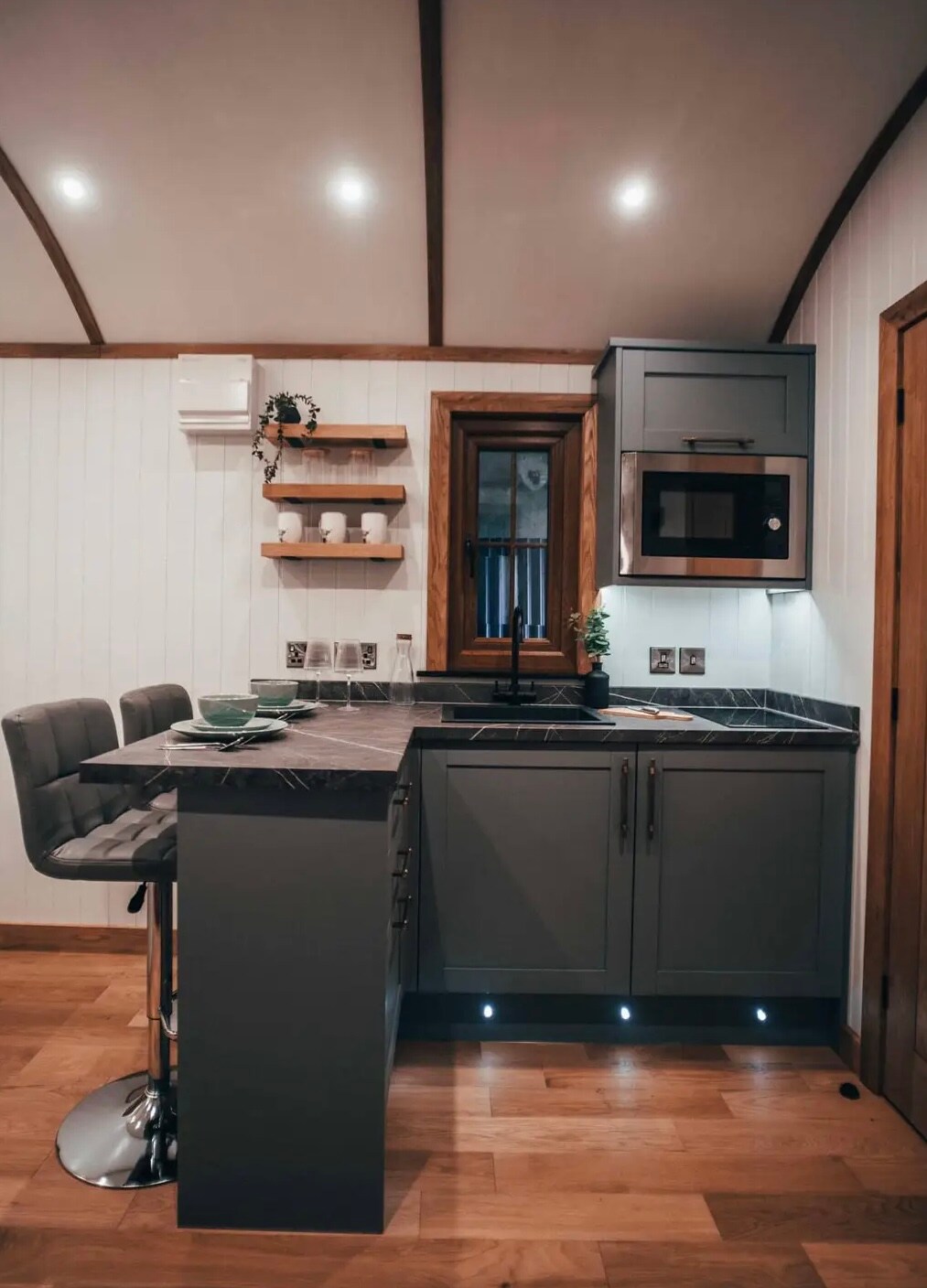 Przytulna i relaksująca przestrzeń z rustykalnymi akcentami. Położony w samym sercu Snowdonii, w otoczeniu gór. Otwarta przestrzeń mieszkalna ze wszystkimi podstawowymi udogodnieniami. Kącik kuchenny z minilodówką i kuchenką kempingową. Parking Dostępny jest prywatny parking, droga do chatki jest stroma. Na dole toru (50 metrów od chatki) dostępne jest miejsce parkingowe lub można podjechać, ponieważ na górze toru jest miejsce do parkowania i zawracania.