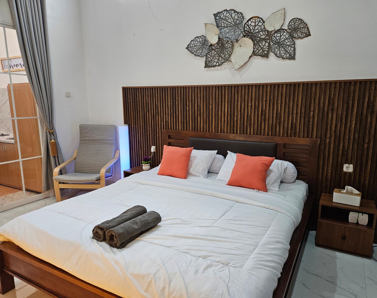 witaj w naszym przytulnym domku gościnnym. Nasz domek gościnny jak apartament z 1 sypialnią, 1 łazienką, 1 kuchnią na mini dziedzińcu. nasz garaż pomieści 2 małe samochody lub 1 duży samochód. i nasza lokalizacja tylko 1 minutę do sudirman street. możesz wybrać nasz domek gościnny i poczuć się jak we własnym domu pamiętaj, że akceptujemy tylko dla rodziny i/lub 1 płci. nie mogę się doczekać, by obsłużyć Cię w Twojej rodzinie ^^