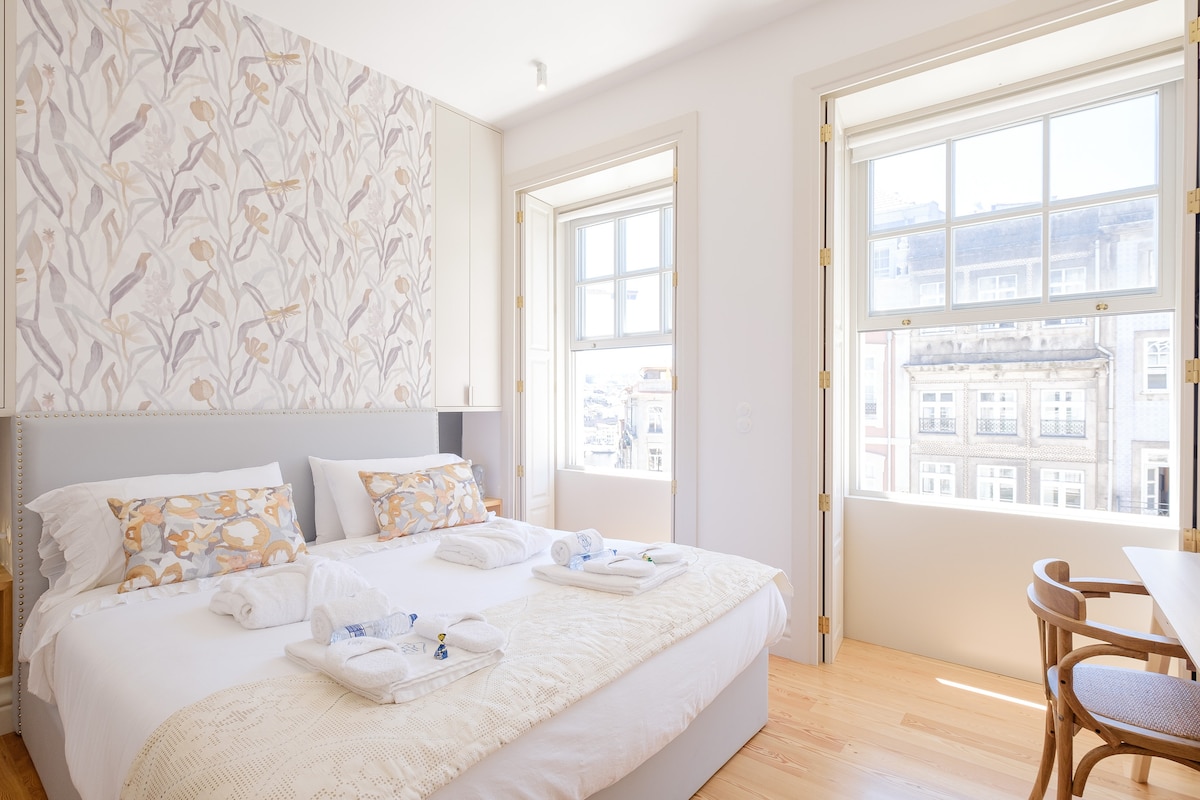 THE RIBEIRA***** Apartment with amazing views is BRAND NEW and provides an exquisite, unique and comfortable stay in the city of Porto. The apartment has a great location, set right in the heart of the historical centre, in the street Mouzinho da Silveira, one of the most historic and picturesque streets of the city. Set in the magnificent UNESCO World Heritage Ribeira area and 5 minute walk from the Douro River. Palácio da Bolsa and Rua das Flores are 2 minute walk.