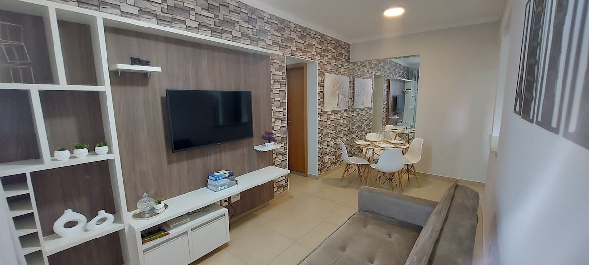 Przytulny apartament, ma 1 podwójne łóżko, 1 rozkładaną sofę, która może pomieścić do 4 osób (2 pary). Znajduje się w południowej strefie Ribeirão Preto, w pobliżu centrów handlowych Iguatemi i Ribeirão, wokół apartamentowca znajdują się pizzerie, restauracje, supermarket Pão de Açúcar i park do spacerów ze zwierzęciem.