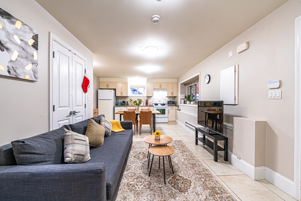 Enjoy a cozy retreat in our fully private guest suite, featuring a separate entrance and no shared spaces. ✔ Queen bed & loveseat sofa ✔ Kitchenette (fridge, Keurig coffee machine, kettle, toaster) ✔ Dining area (a set of table & chairs) ✔ Fast Wi-Fi, Smart TV, & essentials provided 📍 5 min to Costco & restaurants 📍 5 min to Skytrain (easy airport/downtown access) 📍 10 min to Vancouver Airport (YVR) We’re proud to provide a clean and comfortable suite in a convenient location for travellers.