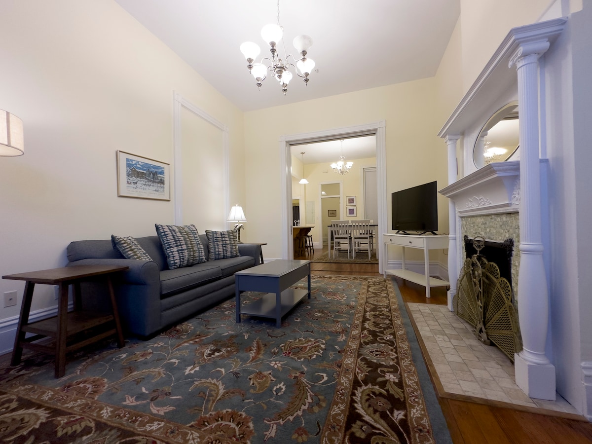 Stylowe miejsce na pobyt w samym centrum. Położony w odległości 1 mili od VCU, RVA Convention Ctr i autostrady międzystanowej. To urządzenie zostało zaprojektowane z myślą o wygodzie i dostępności. Przestronne pokoje, wysokie sufity, nowoczesne udogodnienia w zabytkowym domu. 2 sąsiednie sypialnie są idealne dla rodzin lub noclegów. Masywne drzwi przesuwne można zamknąć, aby zapewnić prywatność. Drzwi francuskie oddzielają również część dzienną od sypialni. Witaj u Dana Laskina.