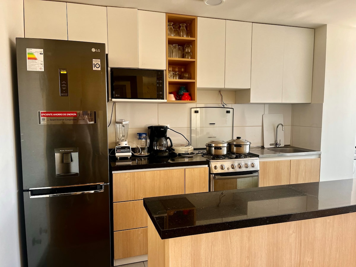 Modern fully furnished apartment, ideal for long stays. Features high-speed Wi-Fi, a 65” Smart TV with Netflix and Disney+, a fully equipped kitchen with espresso machine and water filter, washer-dryer, queen-size bed, and a balcony. The building offers a swimming pool, gym, and coworking area. 24/7 self check-in, smartkey, free parking, and 24-hour security. Strategically located in San Miguel, close to universities and shopping centers, and less than 20 minutes from the airport.