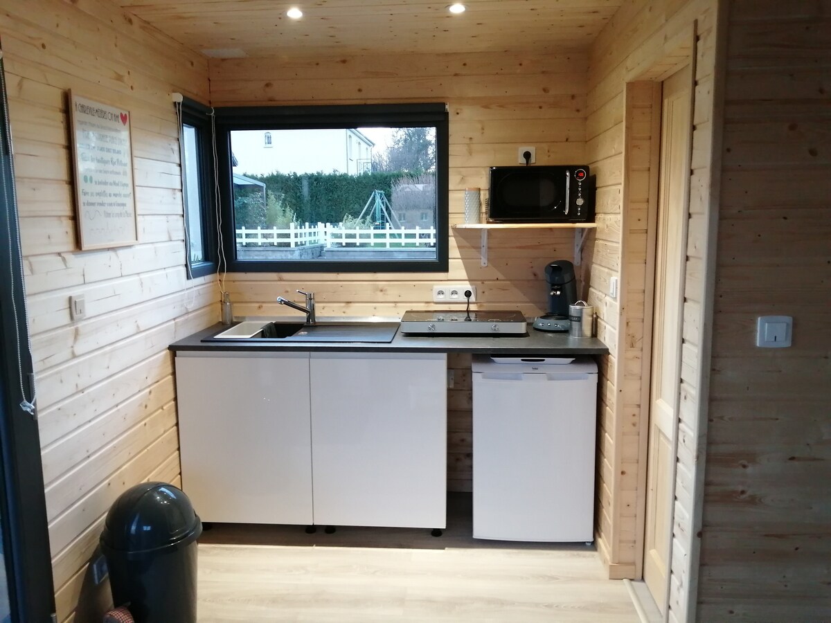 Mały, nowy dom z drewna w stylu chatki składający się z salonu z rozkładaną sofą i aneksem kuchennym, łazienki z prysznicem i toaletą, sypialni na piętrze. Idealny dla pary lub małej rodziny Duży ogród jest dostępny przez cały rok, aby uzupełnić ten mały kokon 4 km dzielą Cię od sklepów i będziesz blisko atrakcji turystycznych departamentu (Charleville, jezioro, wędrówki, dolina Mozy....) Warto odwiedzić!