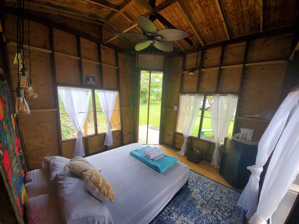La Choza to ekologiczny domek w ogrodzie w pobliżu Sandy Beach i zaledwie kilka minut od wszystkich popularnych miejsc do surfingu! Dostępny plan posiłków wegańskich lub wegańsko-wegetariańskich! Zapytaj o nasze opcje śniadaniowe i kolacyjne dostarczane codziennie za dodatkową opłatą. Teraz zasilamy się energią słoneczną! Nowa klimatyzacja inwerterowa! Ciesz się drzewami owocowymi i zielonymi widokami z prywatnego tarasu, a przez całą noc będziesz słyszeć fale unoszące się na morskiej bryzie. Warto wiedzieć – musisz być komfortowo z dużą ilością schodów!