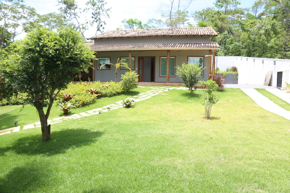 Casa privativa, aconchegante, bem equipada e espaçosa, ideal para casais e famílias que buscam descanso e lazer em meio à natureza e a poucos quilômetros do mar. O espaço oferece duas suítes climatizadas com ar-condicionado, banheiro social, sala ampla, jacuzzi, jardim espaçoso e área gourmet completa. A casa fica aproximadamente a 4 km da praia (6 minutos de carro) oferecendo todo conforto sem abrir mão da proximidade com o mar. Estrutura completa para quem quer curtir com privacidade.