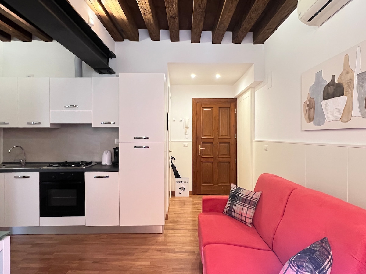 Canal View to przytulny apartament dla dwóch osób, z widokiem na spokojny kanał wenecki w samym sercu miasta. Zaledwie 8 minut od Piazza San Marco i 15 minut od mostu Rialto – to idealna baza dla par lub podróżujących w pojedynkę. Gustownie urządzony, wyposażony w klimatyzację, Wi-Fi, kompaktową kuchnię, prywatną łazienkę oraz pralkę i suszarkę. Autentyczny i spokojny relaks zaledwie kilka kroków od najbardziej kultowych atrakcji Wenecji.