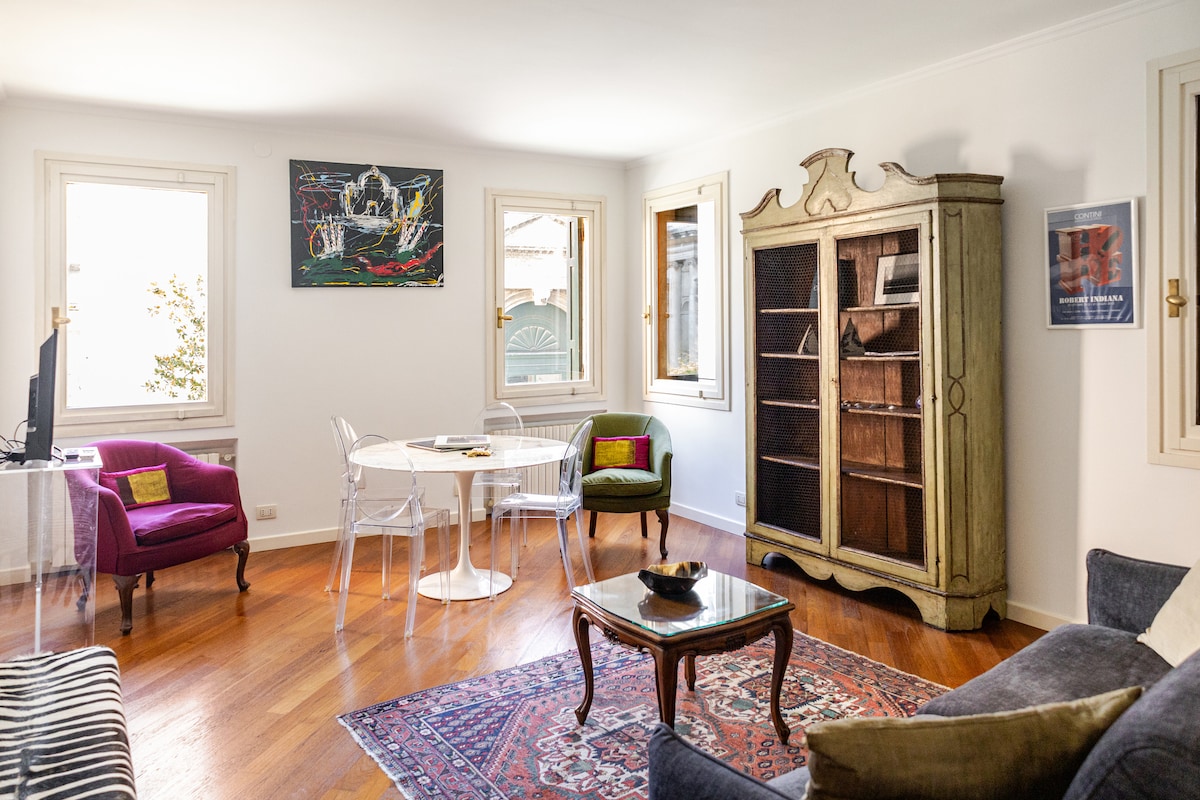Terrace view, bright, 1.5-bedroom apartment in the most trendy district of Venice, 7mins from San Marco Sqr, 6mins from Rialto Bridge and 2mins from La Fenice Theatre. Neighborhood with lots of leisure, but in a quiet street... Perfect! Please note that we are committed to complying with Airbnb's ENHANCED CLEANING PROTOCOL, developed in consultation with industry leaders in the field of sanitation and medicine, to guarantee maximum safety and protection.