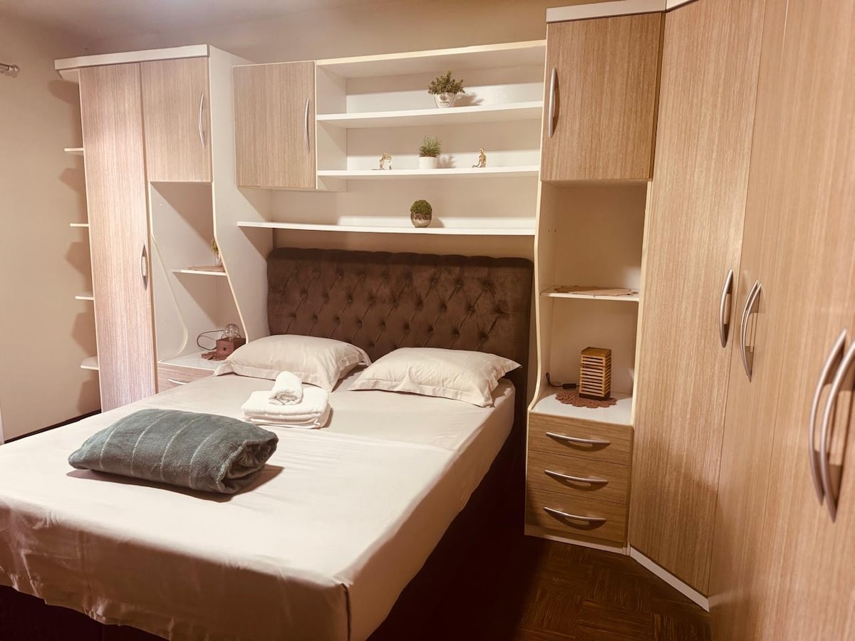 Apartamento com uma suíte, bem no centro de Rio dos Cedros com excelente localização. Para quem busca lazer e conforto estamos próximo da Região dos Lagos, Morro do São Bernardo, Timbó, Pomerode e demais pontos turísticos. A apenas 12km de Timbó , 20km de Benedito Novo e 16km da de Pomerode. Para quem vem a trabalho, estamos no centro da cidade. Para sua segurança o Apartamento Hortênsia fica no primeiro andar, e conta com sistema de alarme e garagem privativa.
