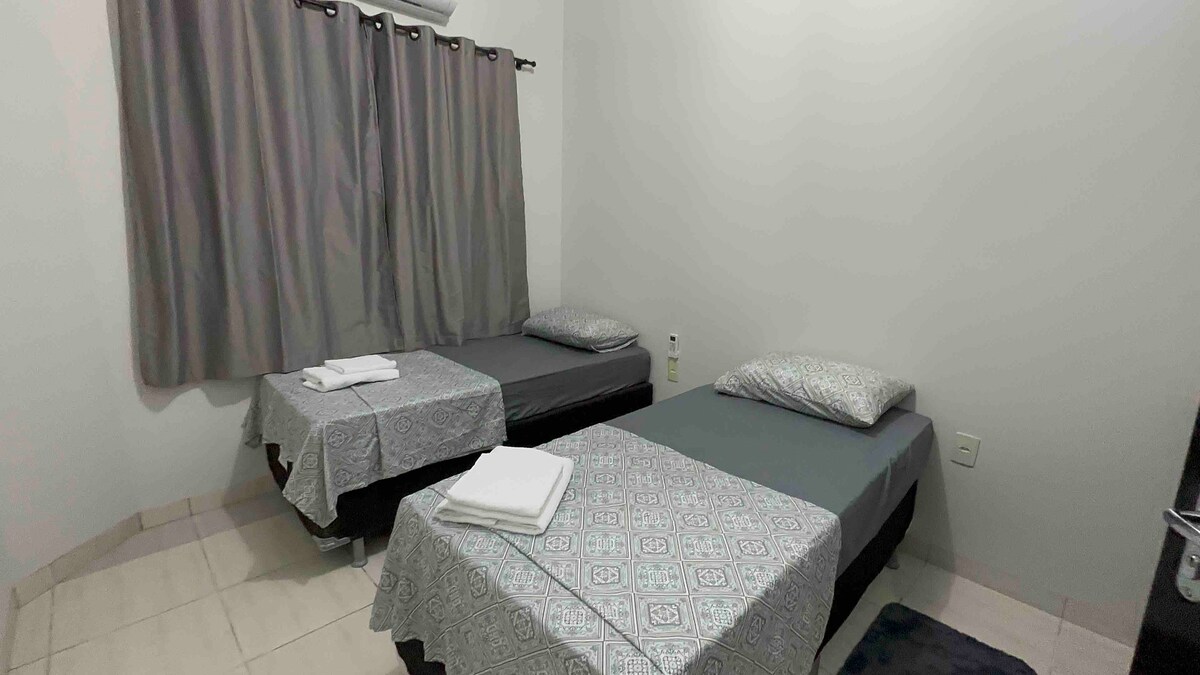 Acomode-se em uma casa confortável com suíte espaçosa, quarto de solteiro, sala arejada, banheiro social e cozinha totalmente equipada para preparar suas refeições com praticidade. Perfeita para quem busca conforto, tranquilidade e um espaço funcional durante a viagem!