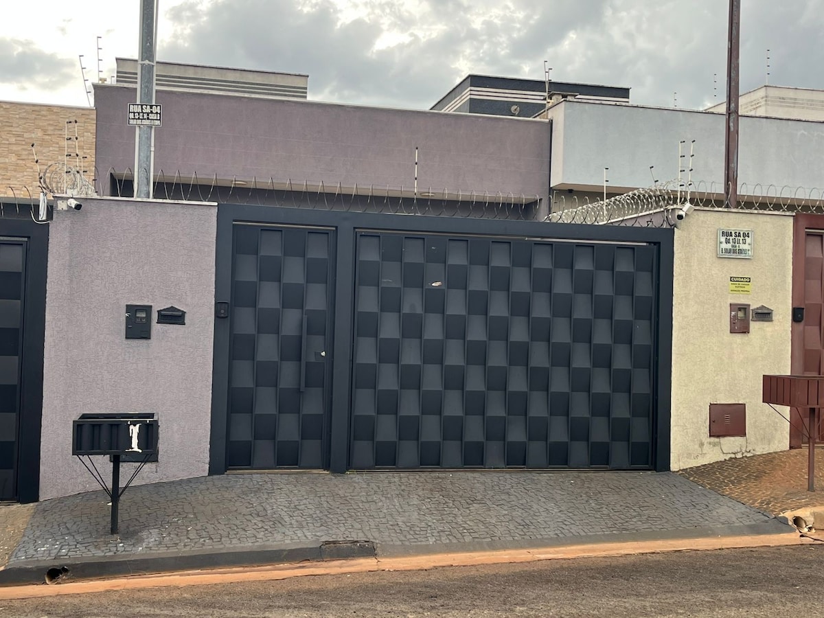 🏡 Casa Ampla, Arejada e Super Confortável! Ambiente espaçoso, bem ventilado e acolhedor. São suíte, quarto de casal e solteiro, todos com ar-condicionado, garantindo máximo conforto. Conta com banheiro social, área de serviço com churrasqueira e jogos de cama e banho. Bairro seguro com vigilância 24h, próximo ao Shopping Buriti, padarias, supermercados, farmácias e postos, com fácil acesso BR-060. Comporta confortávelmente 5 pessoas. Sofá retrátil e reclinável para mais 2. Reserve e aproveite!