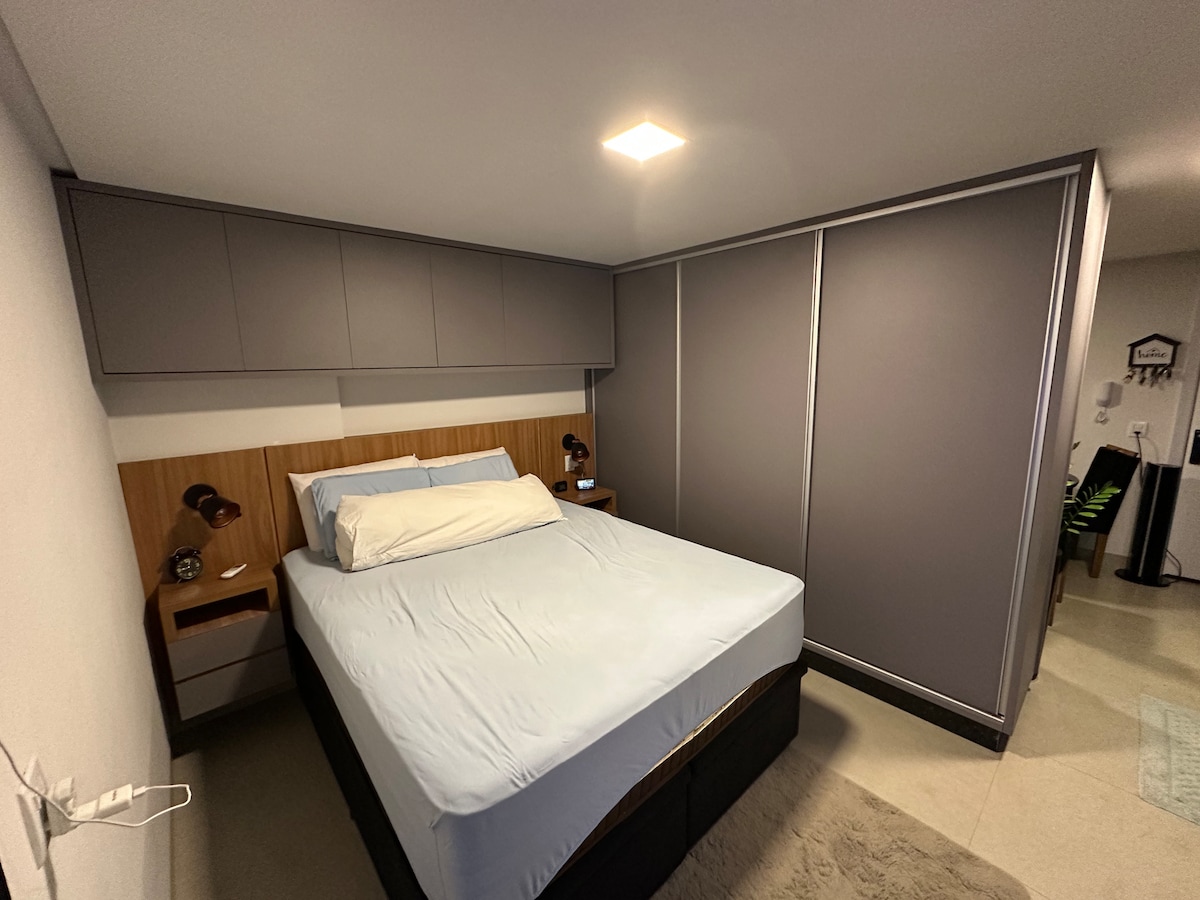 O flat oferece um ambiente aconchegante, limpo e bem organizado, pensado em proporcionar conforto e praticidade. É um espaço tranquilo, ideal para quem busca descansar ou trabalhar com comodidade, sentindo-se em casa durante toda a estadia.