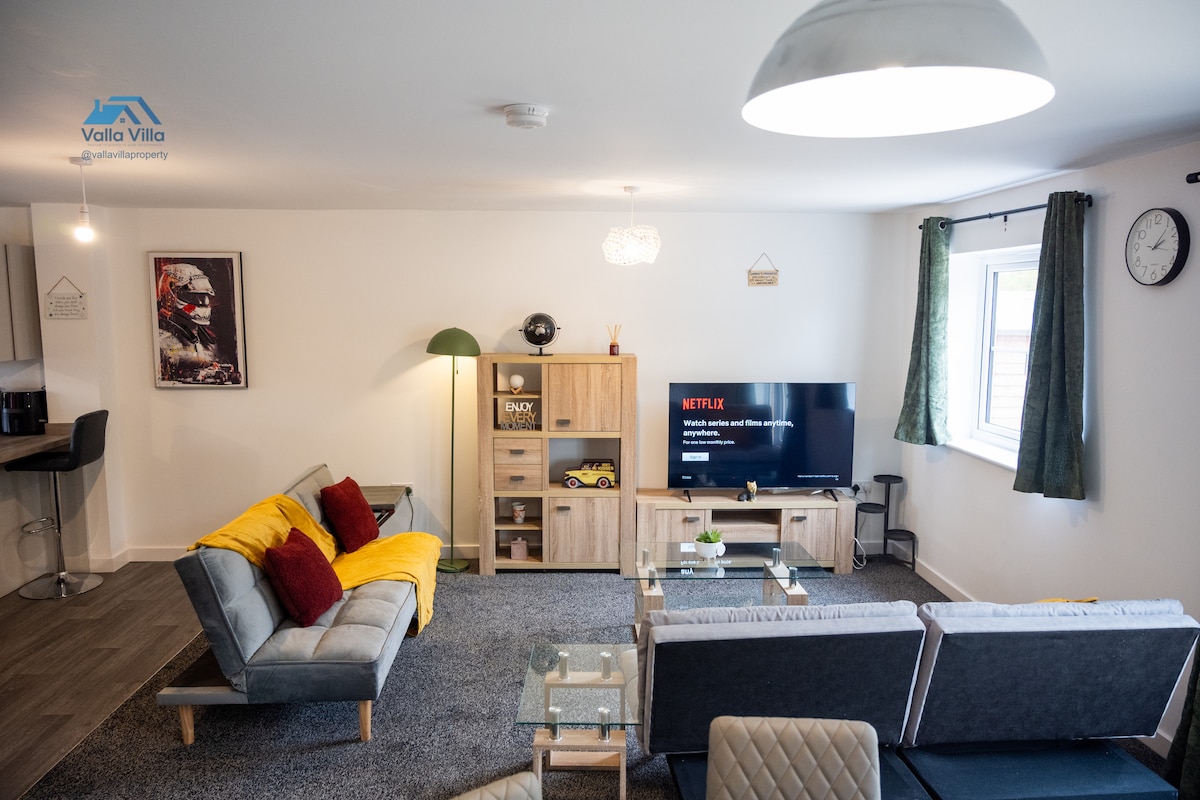 Elm Tree House, odnowiony w listopadzie 2024 roku, znajduje się zaledwie kilka minut od dworca kolejowego, Leicester Racecourse i De Montfort University. Ten dom z 6 sypialniami może pomieścić do 12 osób. Ciesz się 92-calową salą kinową, superszybkim internetem ponad 600 Mb/s, nową kuchnią/jadalnią. The master bedroom offers a super king or twin setup, plus 2 bedrooms with Juliet balconies. Zrelaksuj się w ogrodzie z drewnianymi siedzeniami. Prywatny parking dla 3 samochodów i pobliski parking uliczny sprawiają, że Elm Tree House jest idealnym miejscem na wypoczynek w mieście.