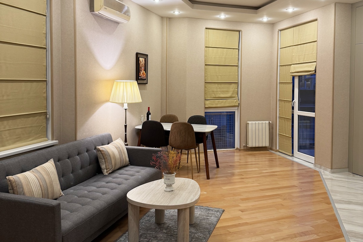 Poczuj urok przytulnego i nowoczesnego apartamentu z jedną sypialnią, starannie zaprojektowanego, aby zapewnić zarówno wygodę, jak i wygodę. Każdy szczegół został brany pod uwagę, aby stworzyć domowy ośrodek wypoczynkowy, wyposażony we wszystkie niezbędne udogodnienia zapewniające bezproblemowy pobyt. Położony w tętniącej życiem dzielnicy Central Saburtalo, będziesz mieć łatwy dostęp do wielu lokali gastronomicznych, miejsc rozrywki i dzielnic handlowych.