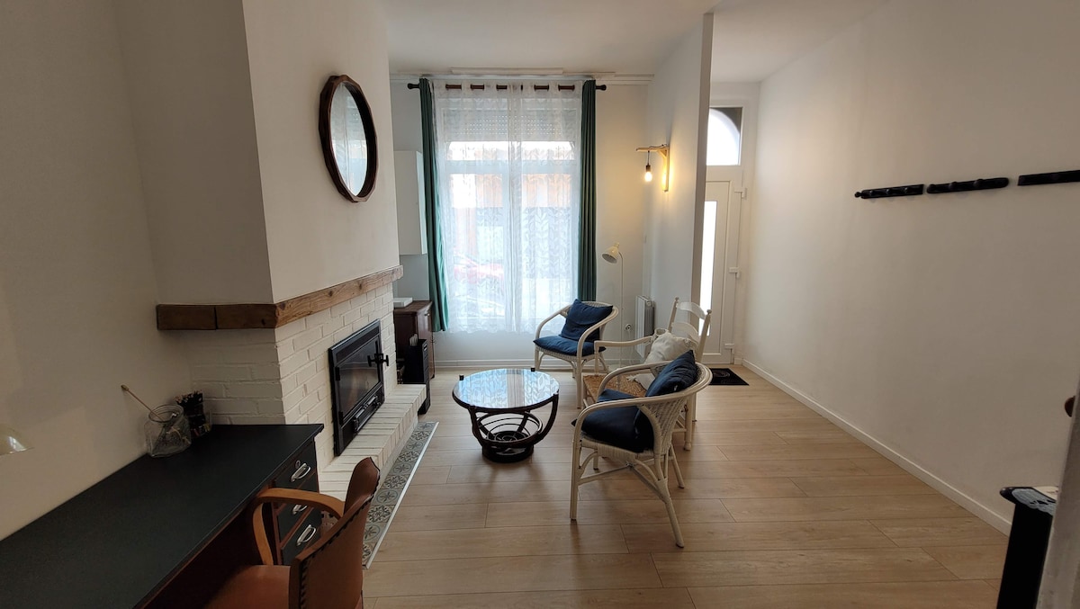 Maison avec 1chambre pour 2pers et dans la salle un canapé lit pour 2pers. A 3,7 du main square Arrêt de bus en face de la maison 3 minutes de la gare 950m de la carrière Wellington 950m Leclerc 400m aldi Tabac350m Le beffroi et ces places à 2,3km. Le ménage sera à effectuer à la fin du séjour. Frais à prévoir linge de lit et serviettes+gants 10 euros. Animaux acceptés. Attention le départ à 11h. Eteindre les radiateurs à la fin de votre séjour. Le jardin n'est pas accessible, pas de wifi.