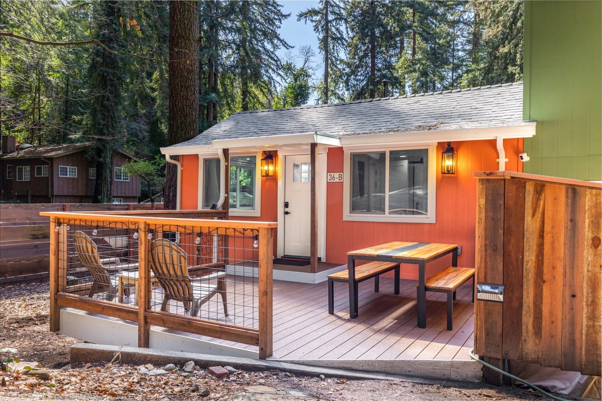 Wybierz się do Whiskey Creek (zezwolenie nr 231409), spokojnej chatki w sekwojach w górach Santa Cruz. Zrelaksuj się w prywatnym jacuzzi pod wysokimi drzewami, odkrywaj pobliskie szlaki i wracaj do przytulnego miejsca na odpoczynek z piecem opalanym drewnem, położonego zaledwie kilka minut od plaż Santa Cruz. Idealne miejsce dla par, rodzin i przyjaciół. Whiskey Creek oferuje palenisko, klimatyzację, głośniki Sonos i szybkie Wi-Fi. Kilka minut od Parku Stanowego im. Henry’ego Cowella, ośrodka Roaring Camp, światowej klasy tras rowerowych w górach i wybrzeża. Pokochasz to miejsce!