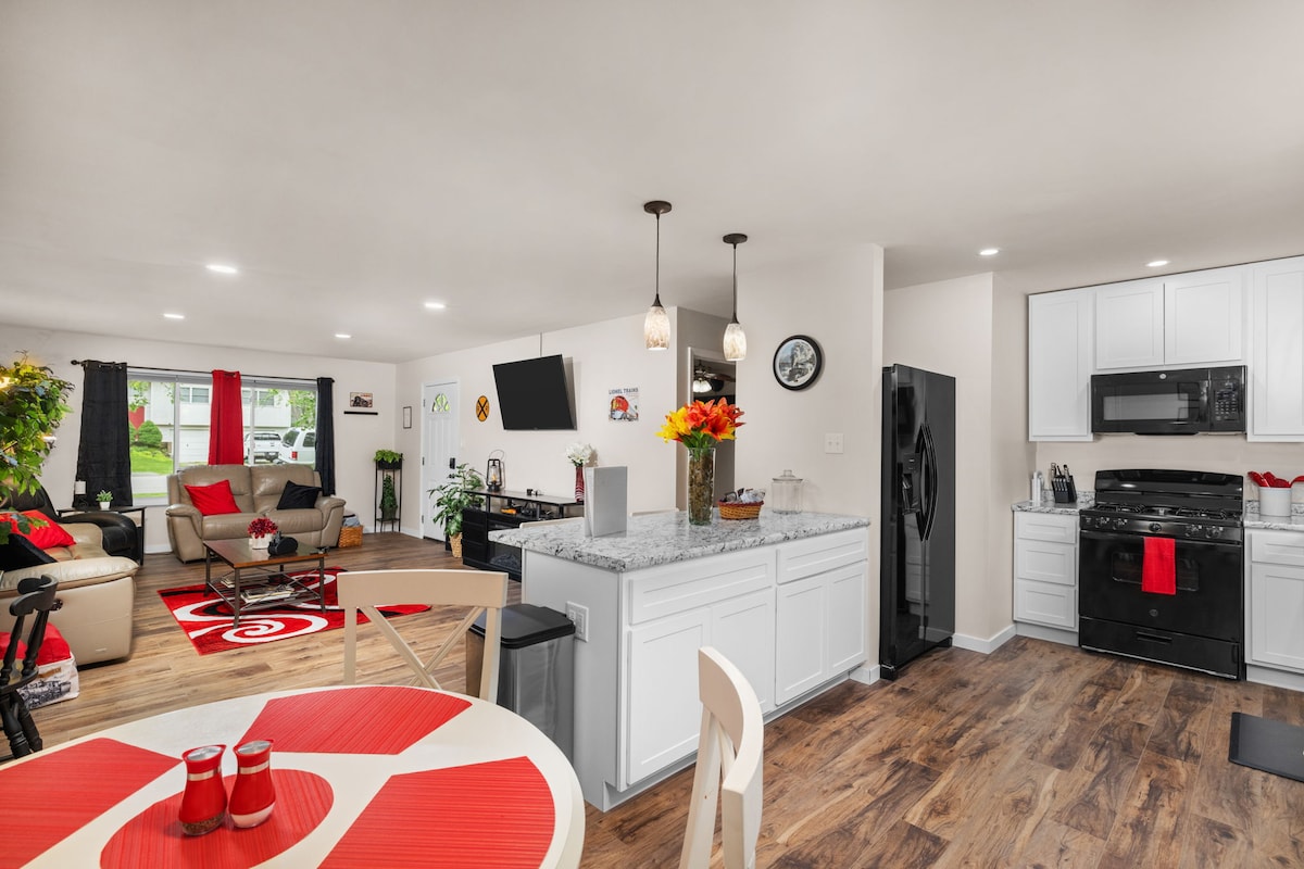 * Szybkie Wi-Fi (widmo) * Wejście za pomocą klawiatury (brak kluczy do śledzenia) * Prywatny podjazd przy drzwiach wejściowych dla łatwego dostępu do bagażu * Ogromne podwórko dla psów, dzieci, a nawet dorosłych do zabawy * Uroczy taras na świeżym powietrzu z dużą ilością wygodnych miejsc siedzących i pięknym krajobrazem * Dla dzieci - zabawki, książki i gry (łamigłówki i gry również dla dorosłych) * Podstawy również dla furbabies - smakołyki, smycze, miski z jedzeniem i wodą, worki na śmieci, ręczniki
