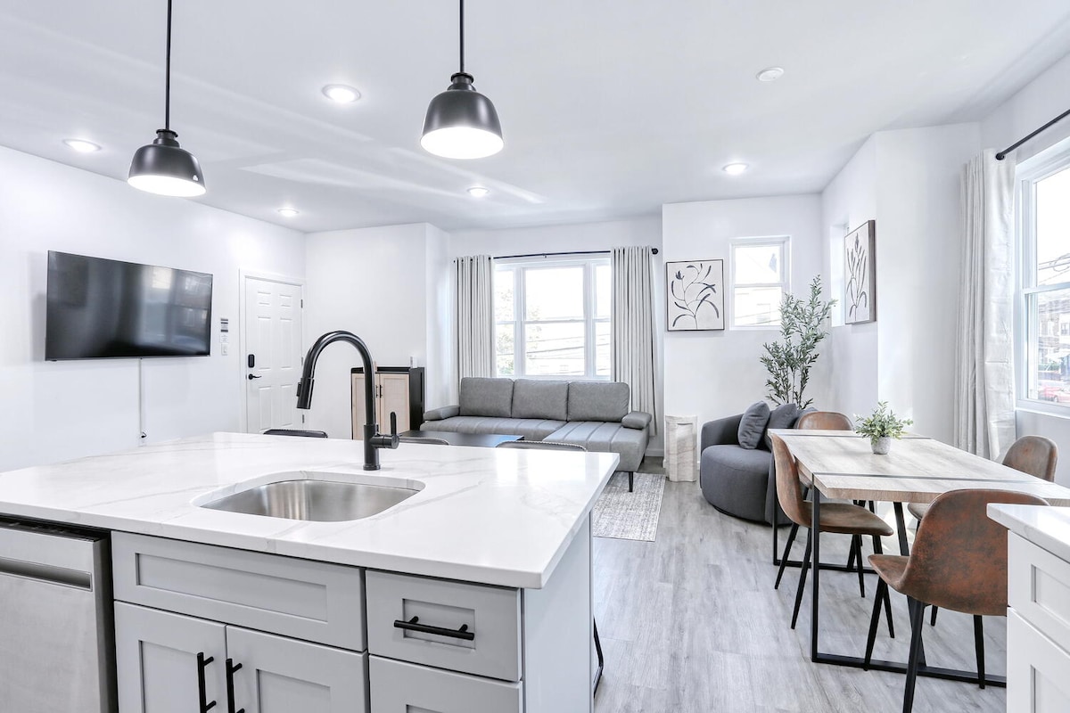 Modern 1BR condo in Hackensack with a private balcony, dedicated work space, and on-site laundry. Zaledwie krótki spacer do Essex St. Train Station z bezpośrednim dostępem do Hoboken, American Dream Mall, MetLife Stadium (20 minut) i Nowego Jorku przez NJ Transit i pobliskie trasy autobusowe. Idealne dla pracowników zdalnych lub odkrywców miast szukających cichego, wygodnego pobytu z łatwym dostępem do miasta. Tylko parking na ulicy
