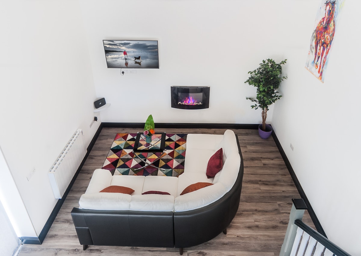 E Gray house to luksusowe miejsce wypoczynku położone w pięknej leśnej scenerii i tuż przy trasie Waterford Greenway. To tylko krótka przejażdżka rowerem do miasta Dungarvan i kilku plaż. Chociaż trudno będzie Ci opuścić stylowe i komfortowe wnętrze, gdy usiądziesz przed kominkiem, aby poczytać książkę lub obejrzeć ulubione programy wyświetlane na naszym wysuwanym ekranie o przekątnej 180 cm. Z przytulnej sypialni na antresoli roztacza się piękny widok na morze, który delikatnie zachęca do zwolnienia tempa i cieszenia się czasem spędzonym z dala od codzienności.