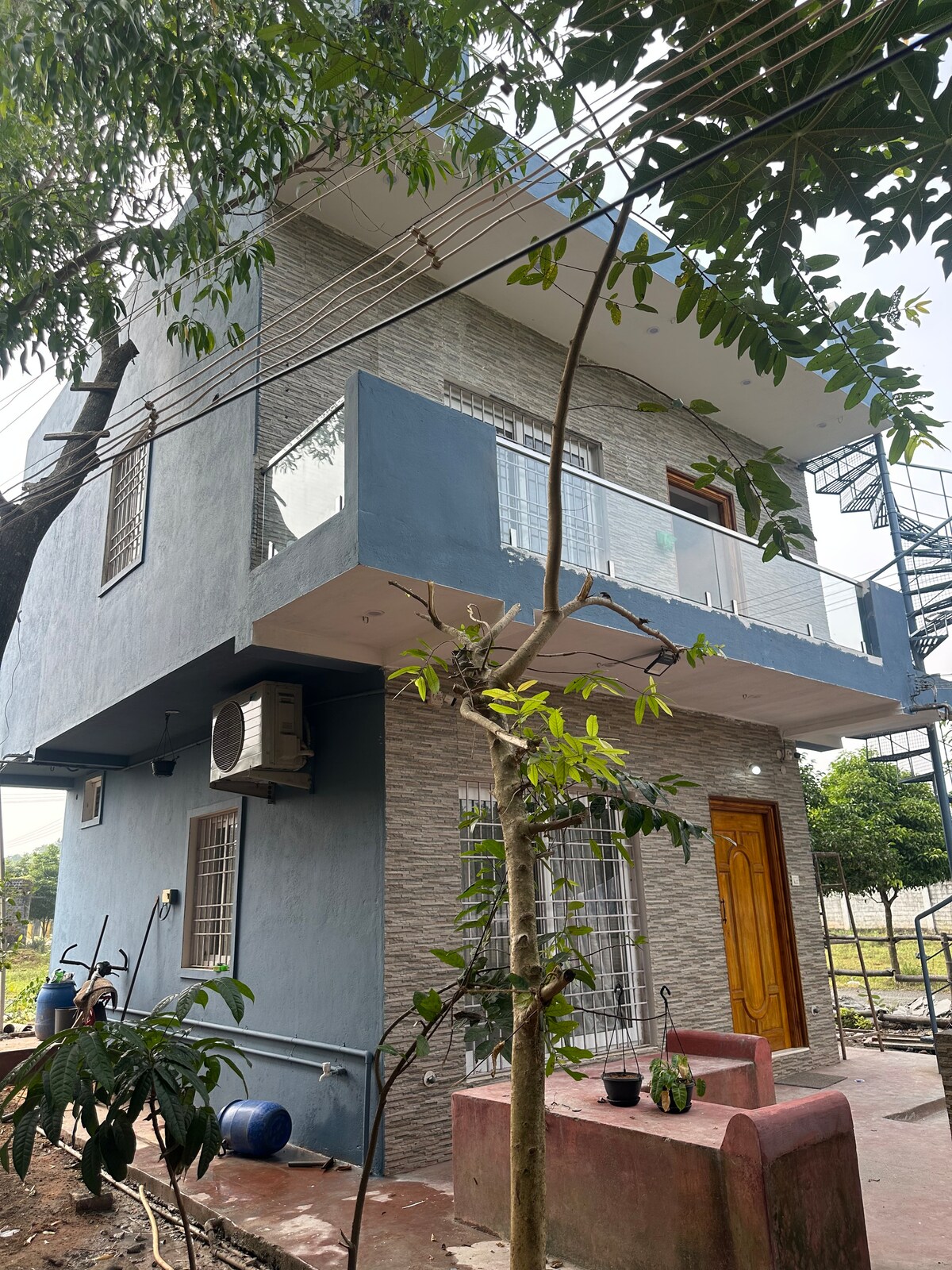 Ucieknij do spokojnego gospodarstwa otoczonego drzewami i zielonymi krajobrazami. Ten przytulny wiejski dom położony jest w spokojnej, słabo zaludnionej okolicy. Możesz tu oddychać świeżym powietrzem, cieszyć się spokojnymi porankami i odpocząć od miejskiego ruchu. Ciesz się widokami na przyrodę, gwiaździstymi nocami i spokojną atmosferą idealną dla par, rodzin i osób pracujących zdalnie. Zrelaksuj się na werandzie, oddychaj w ciszy i odkryj orzeźwiający wypoczynek w pobliżu Auroville i lokalnego uroku.