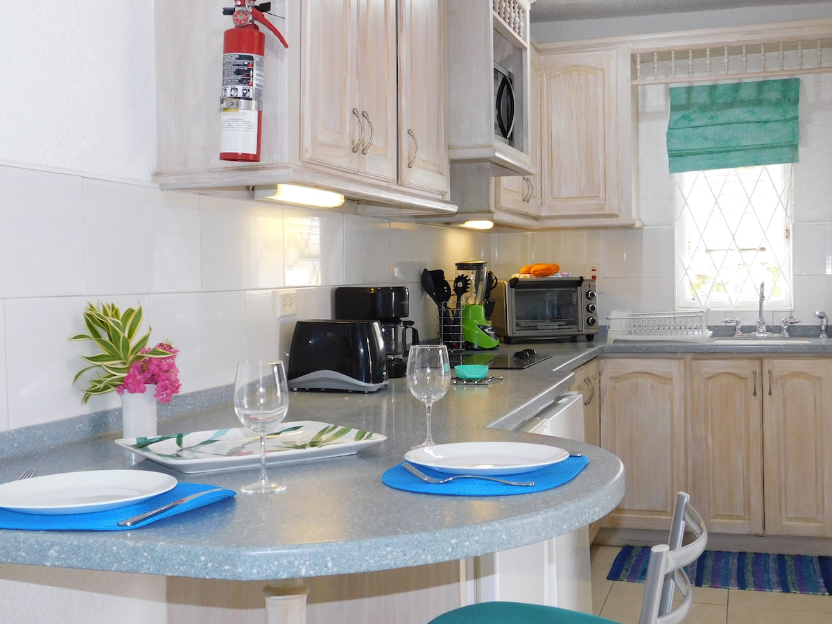 Apartament z jedną sypialnią (łóżko typu Queen) z rozkładaną sofą na parterze, w salonie i jest połączony garażem z głównym domem. Położony na południowym wybrzeżu Barbadosu, trzy minuty spacerem od plaży i promenady, w pobliżu barów, restauracji, centrum handlowego/sklepów, gabinetu lekarskiego/apteki, stacji benzynowej i supermarketu.